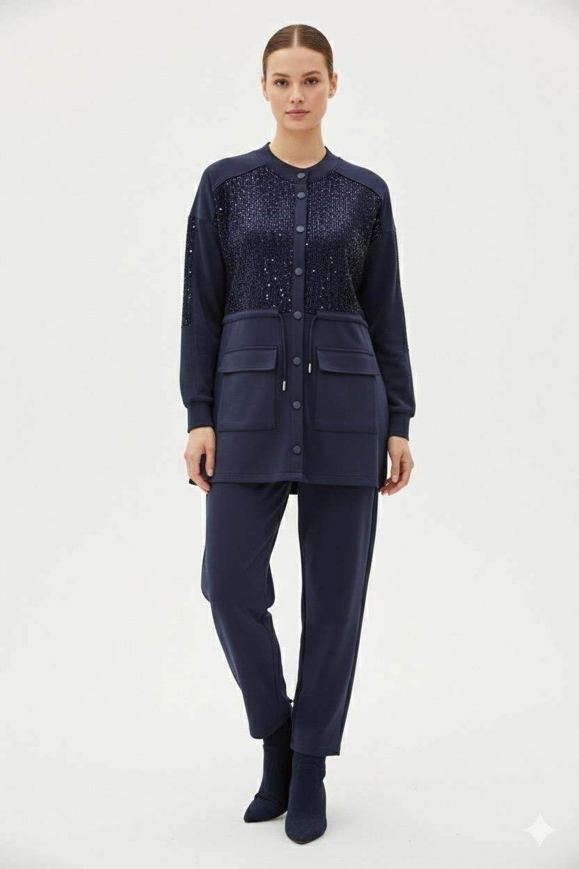 Ahi 11143 Payet Detay Pantolonlu Takım - Lacivert