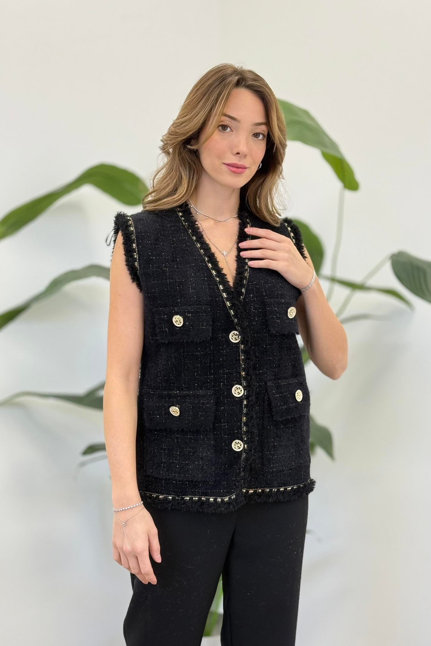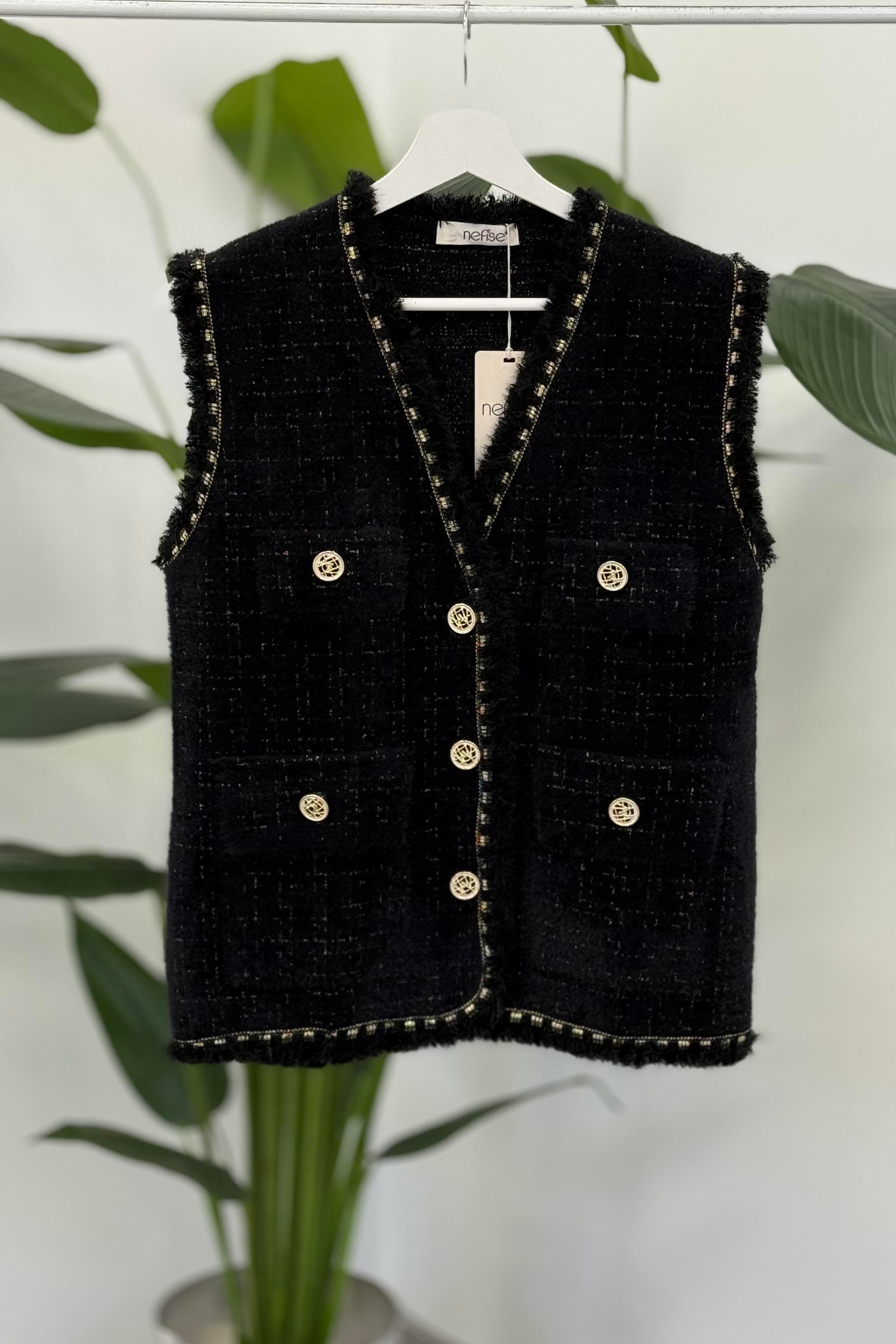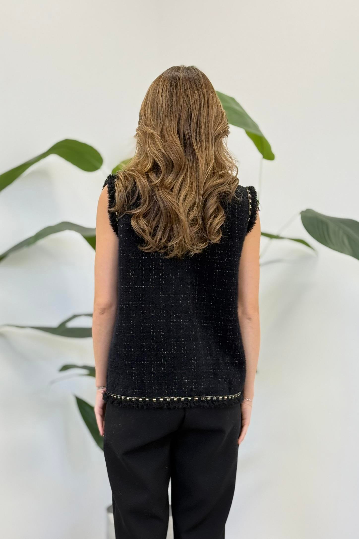 Angora Sim ve Püskül Detaylı Yelek 140363 - Siyah