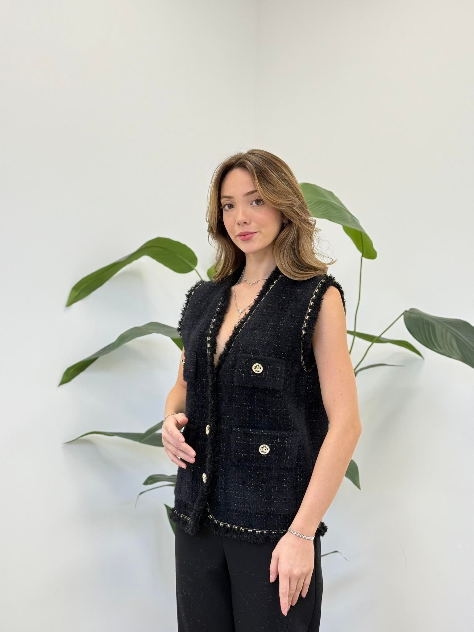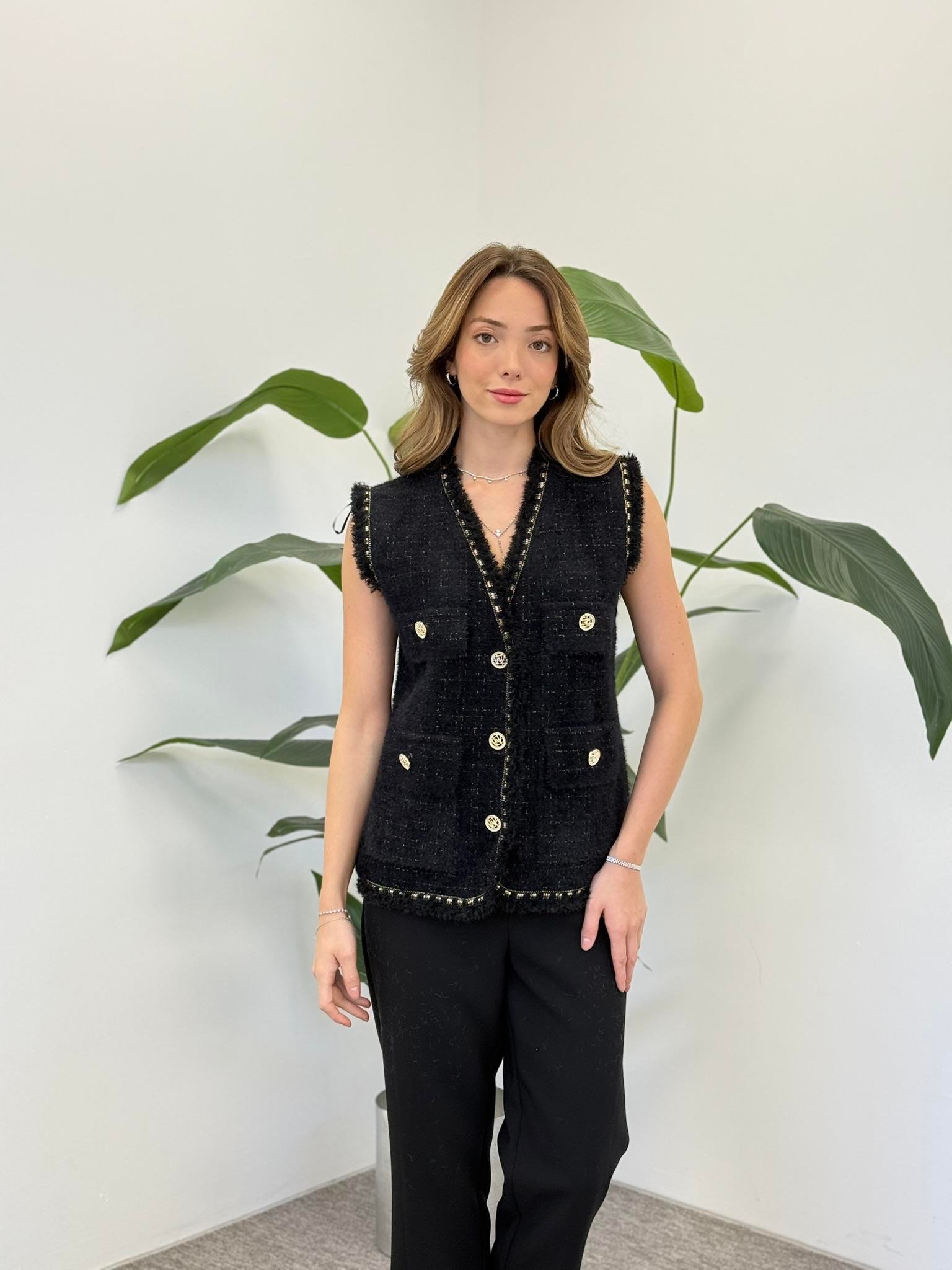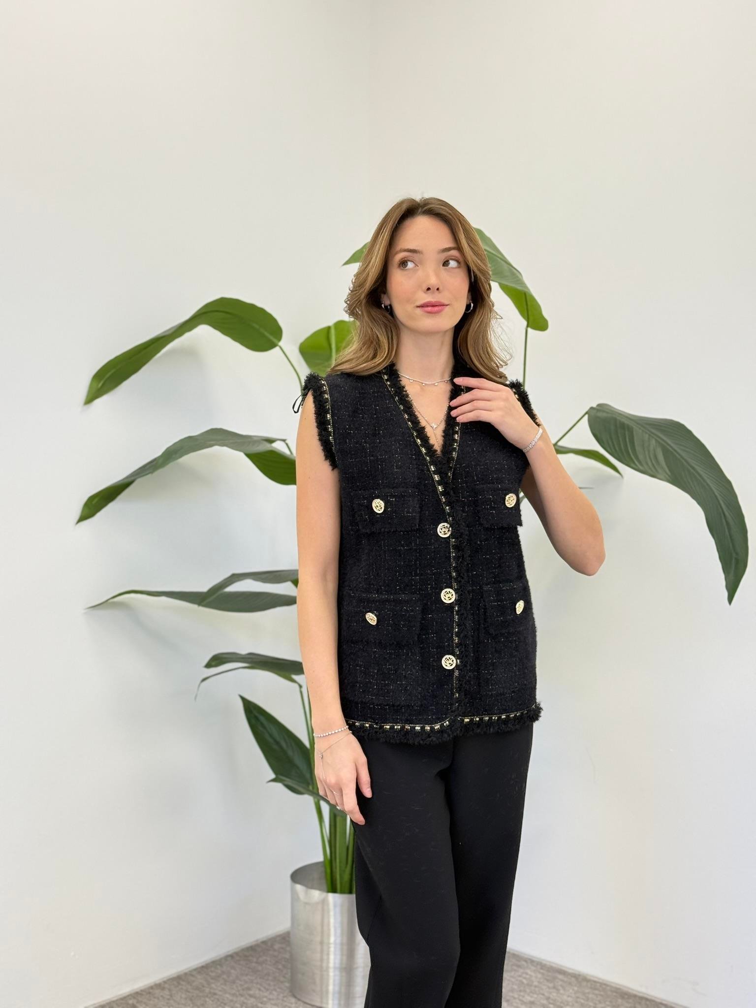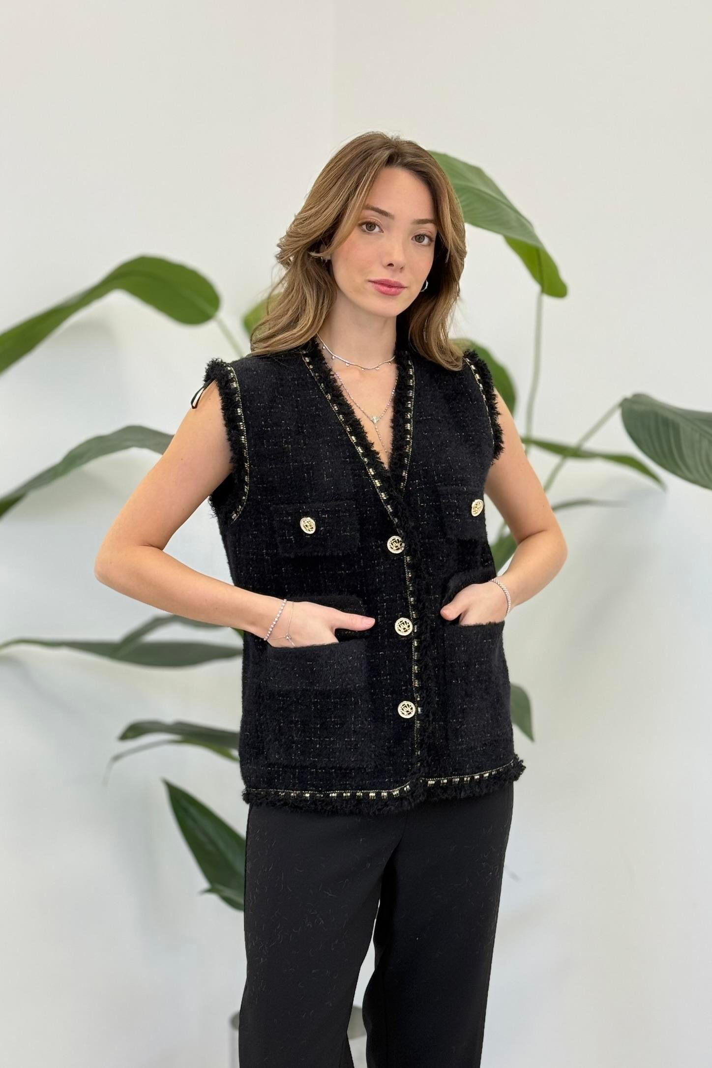 Angora Sim ve Püskül Detaylı Yelek 140363 - Siyah