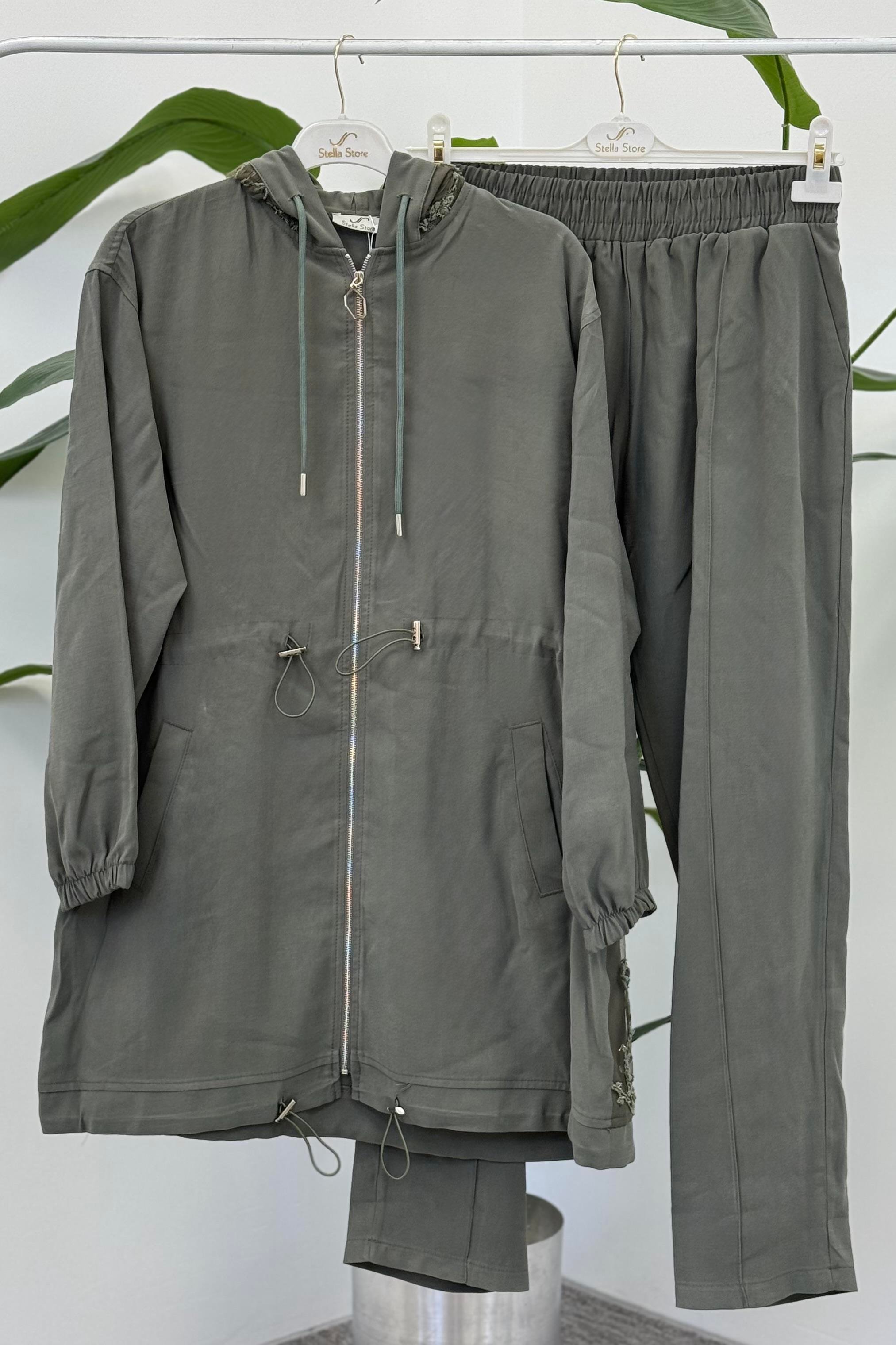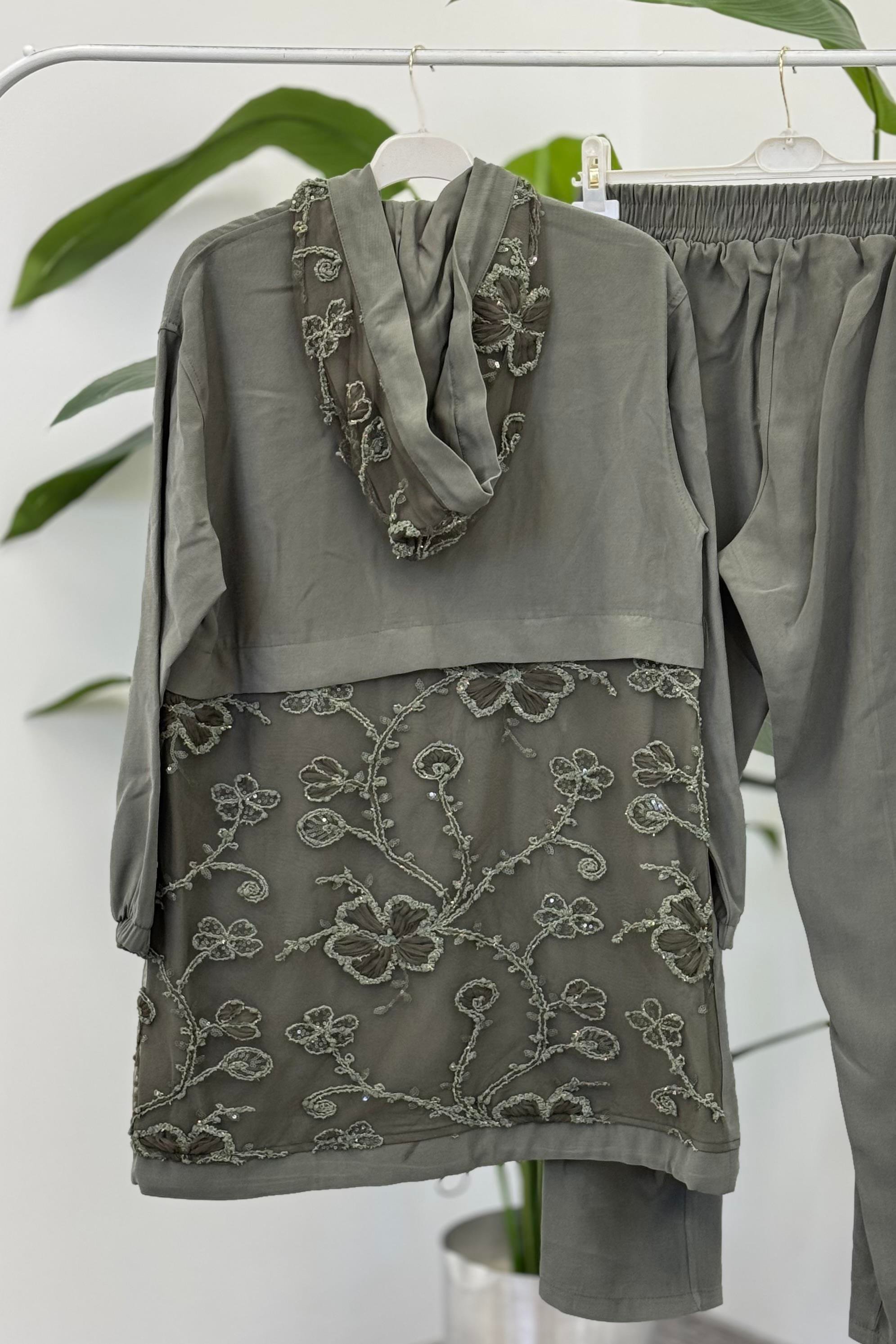 Arka Çiçek Nakış İşlemeli Pantolonlu Takım 1372 - Haki (350307905)