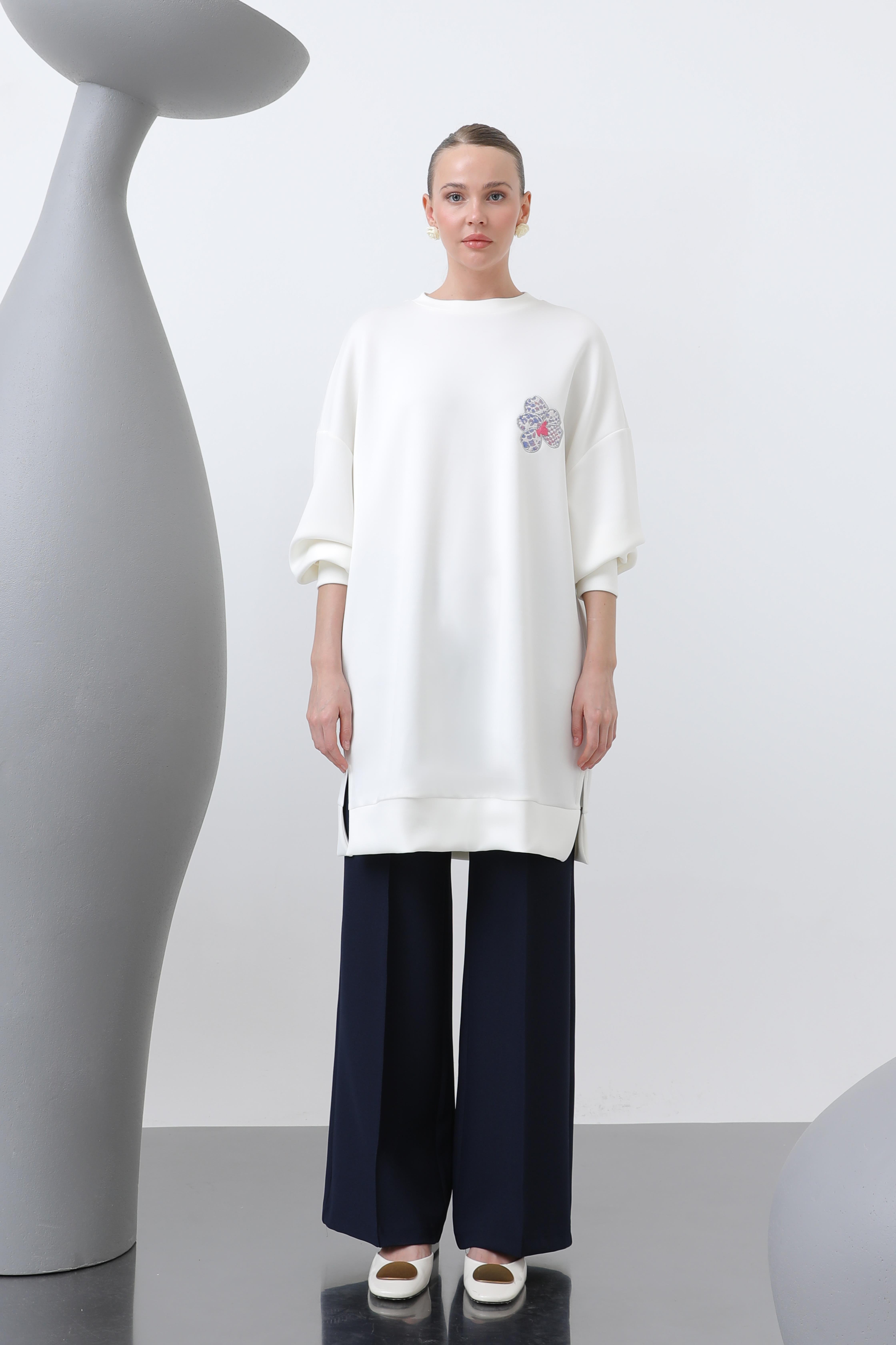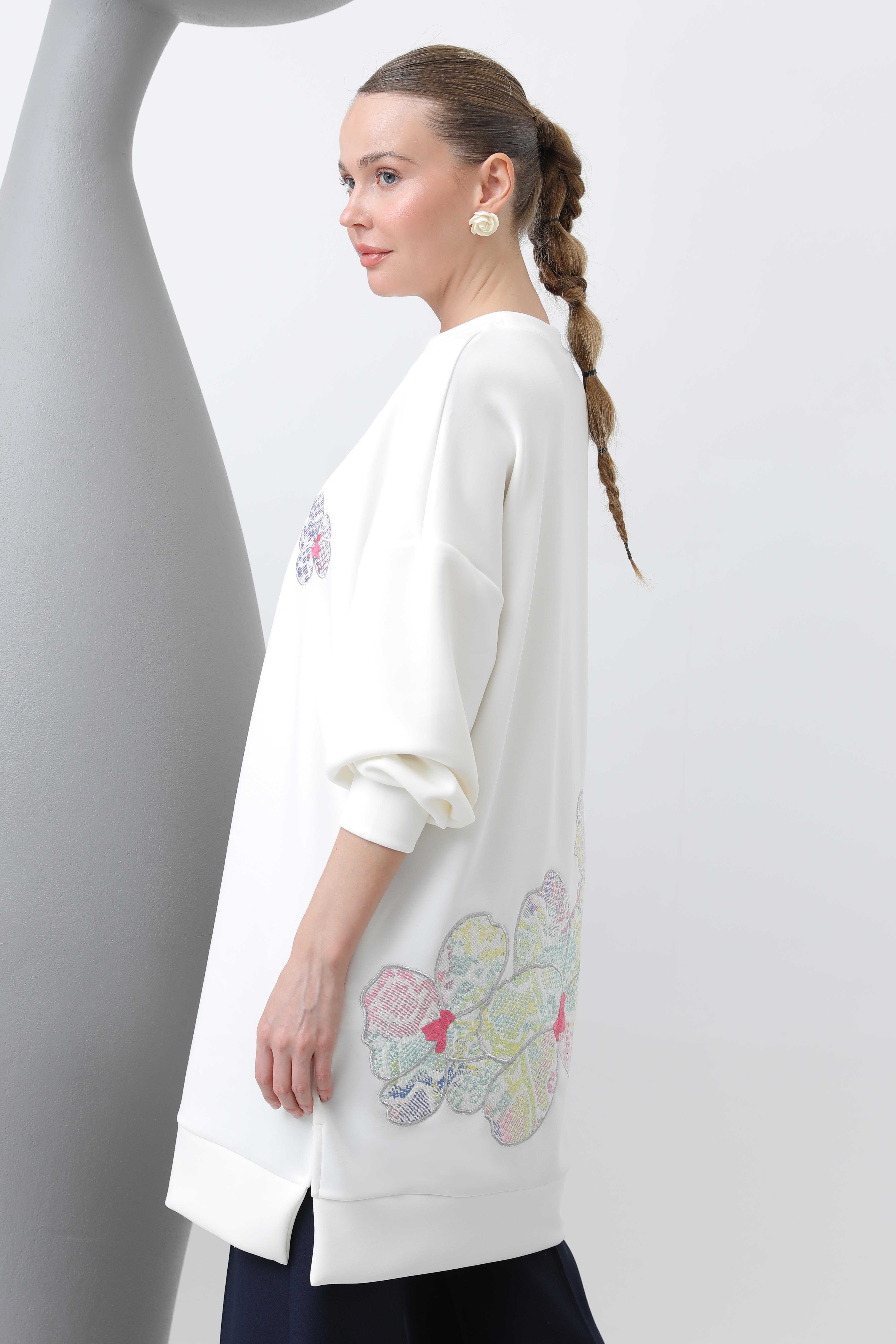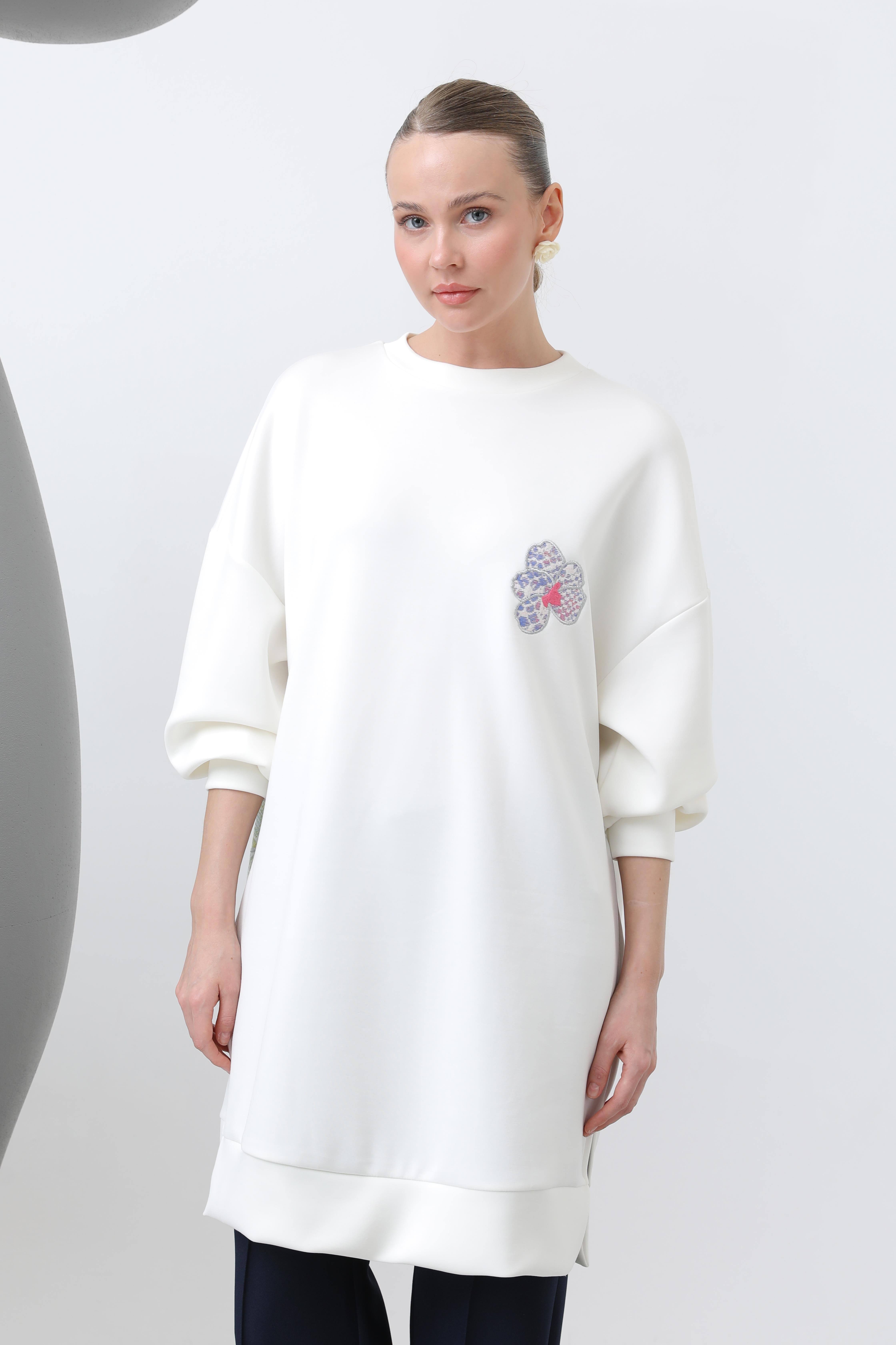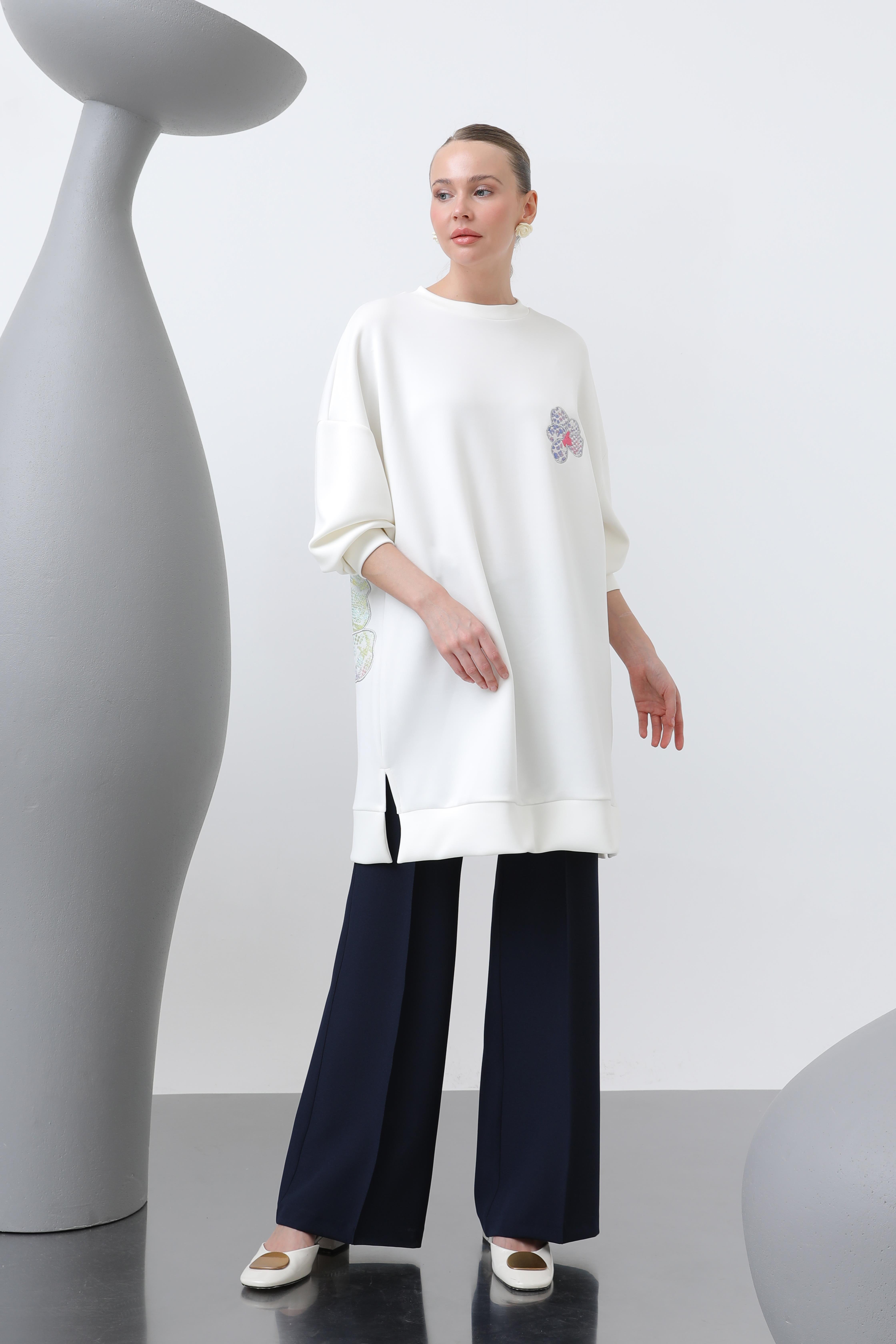 Arkası Çiçek Naskış İşlemeli Tunik 10641 - Ekru