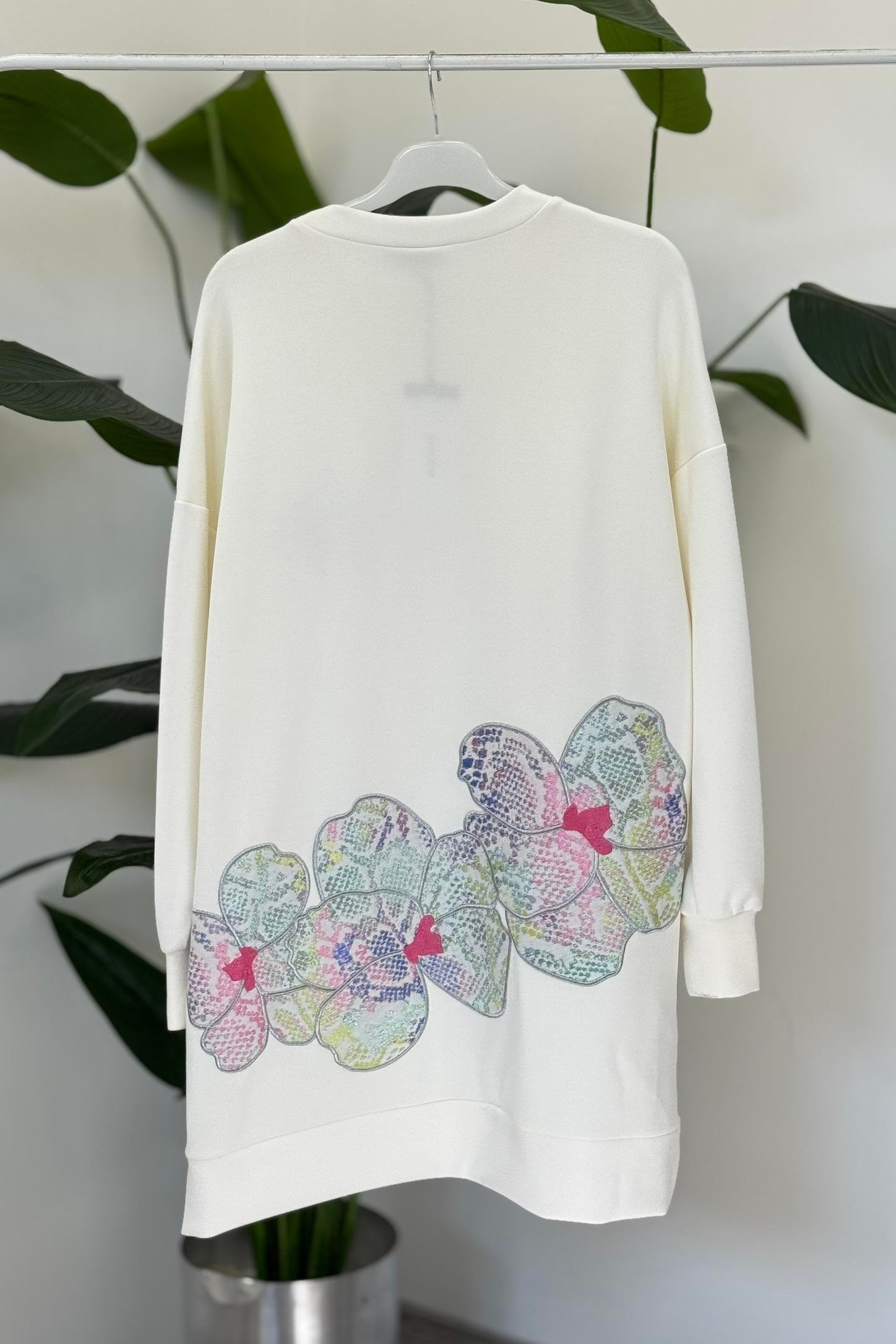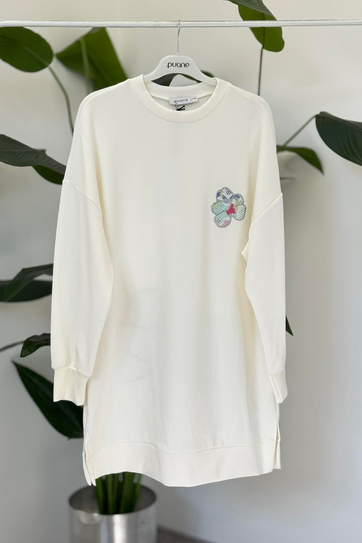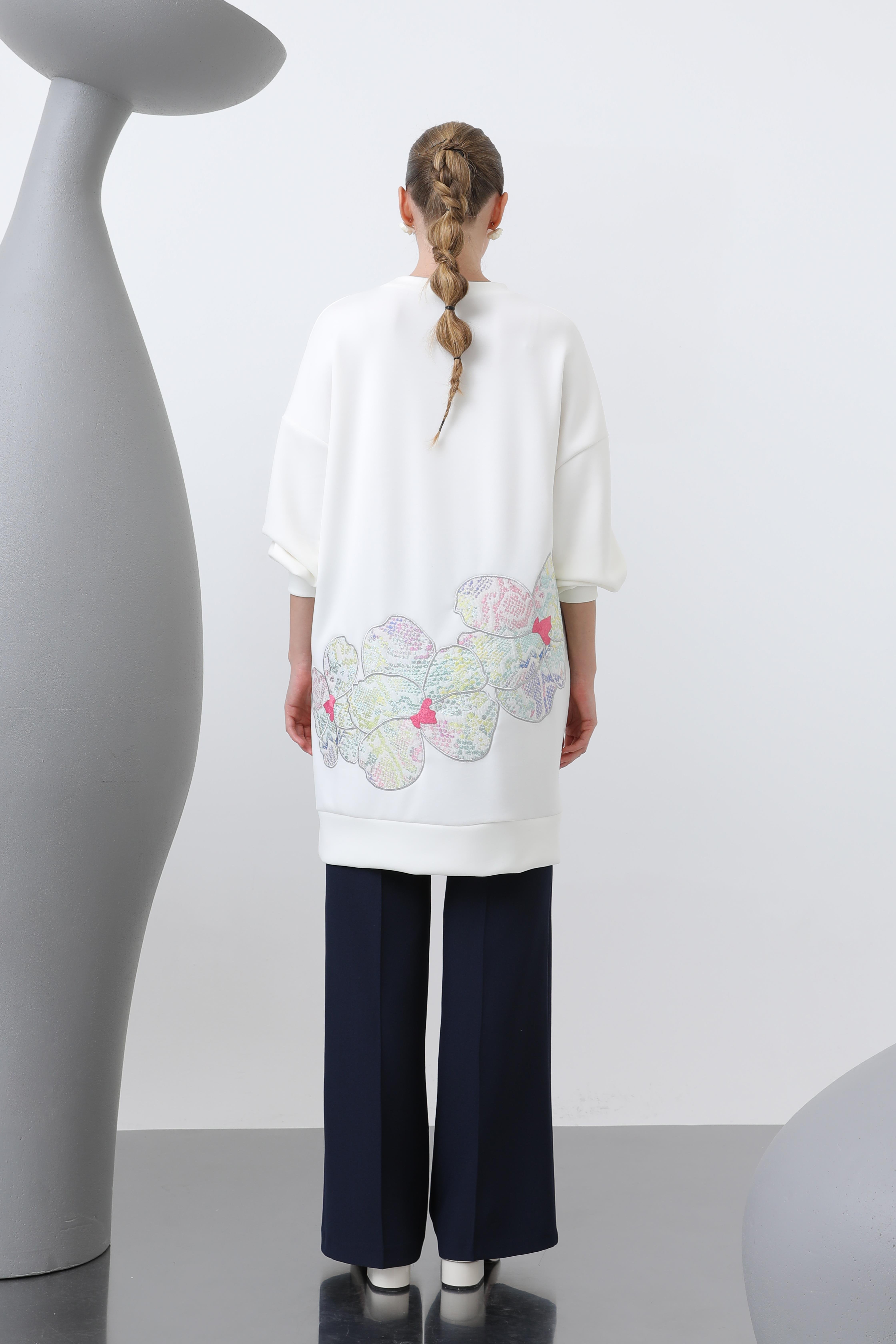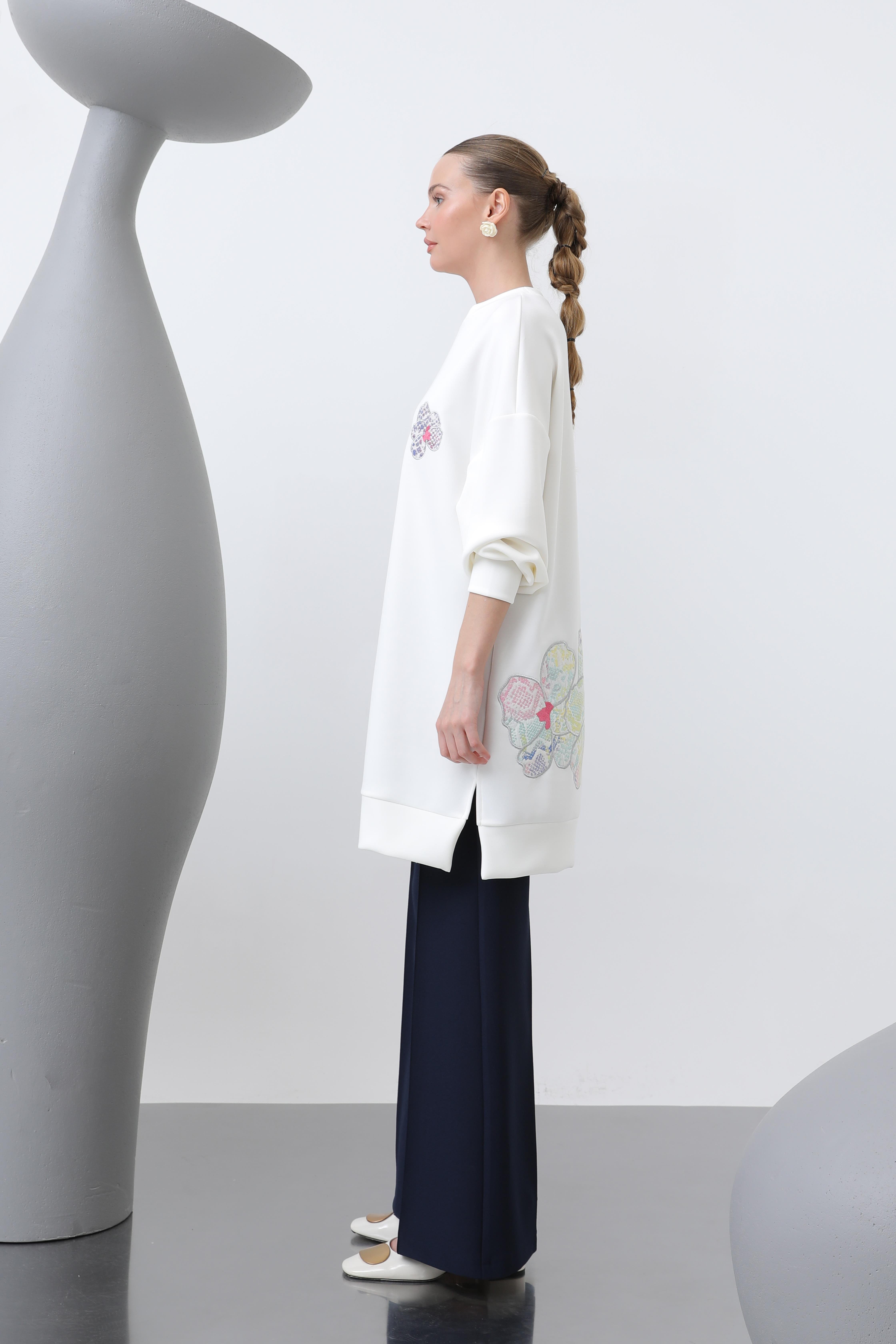 Arkası Çiçek Naskış İşlemeli Tunik 10641 - Ekru