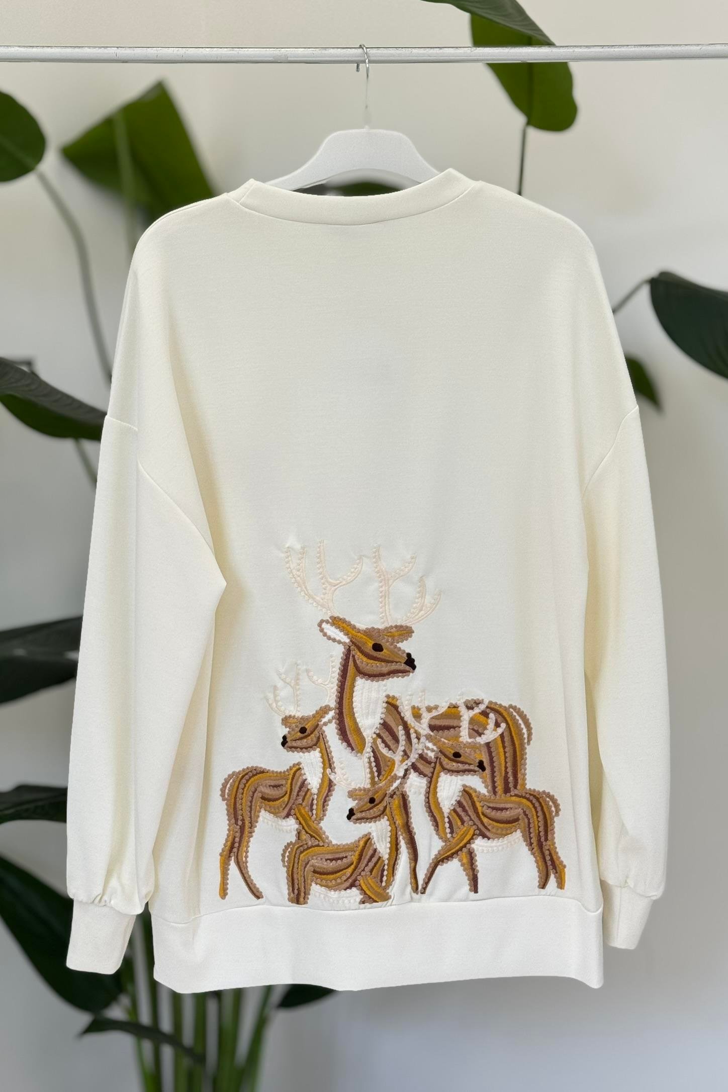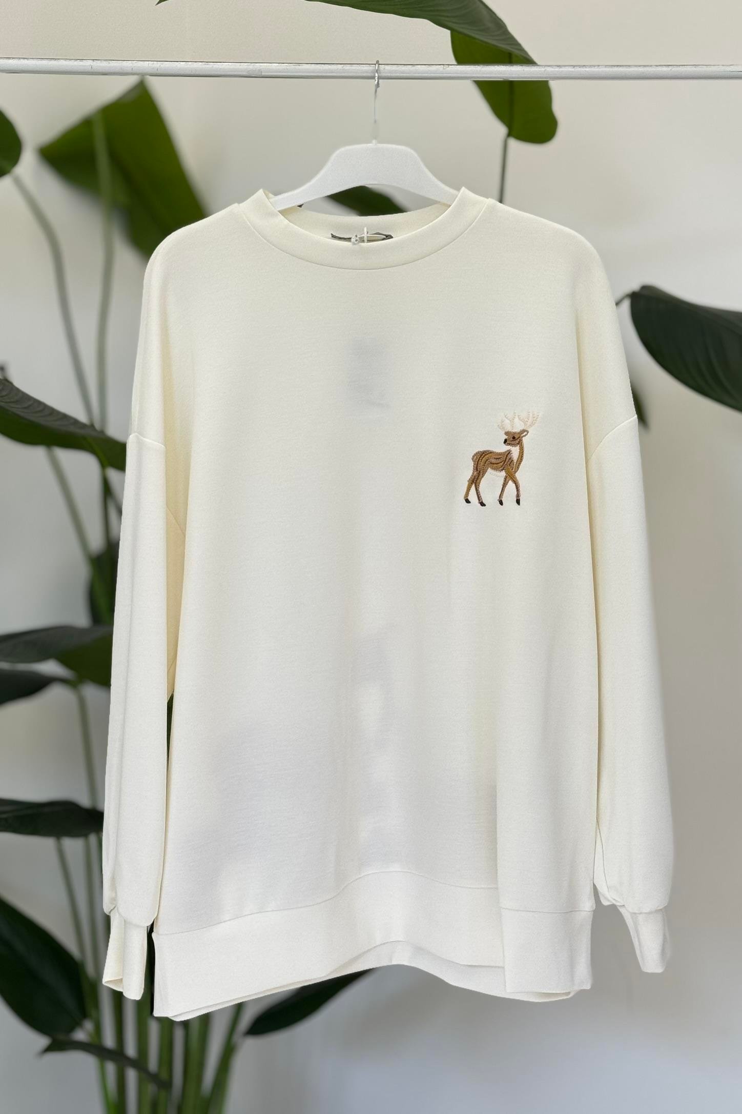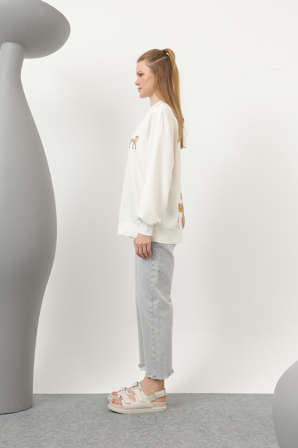 Arkası Geyik Baskılı Kısa Tunik 32118 - Ekru