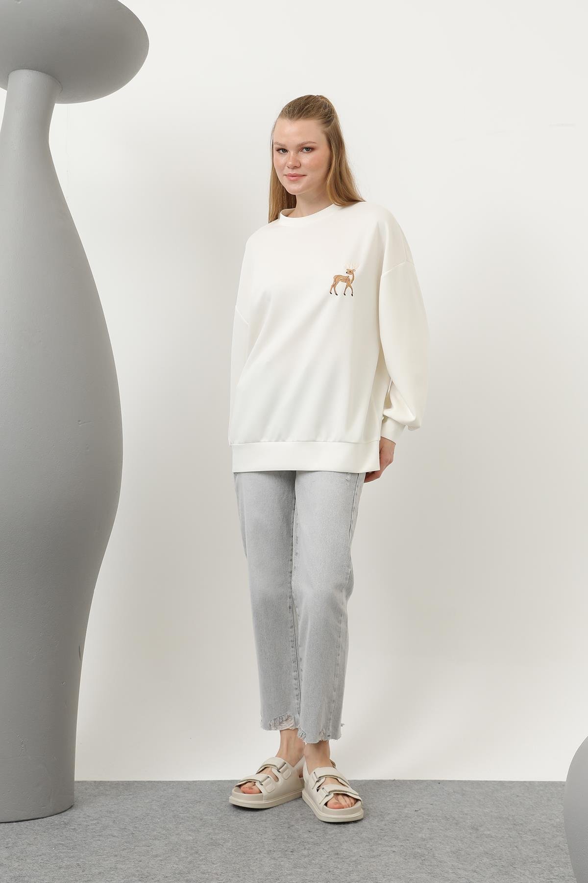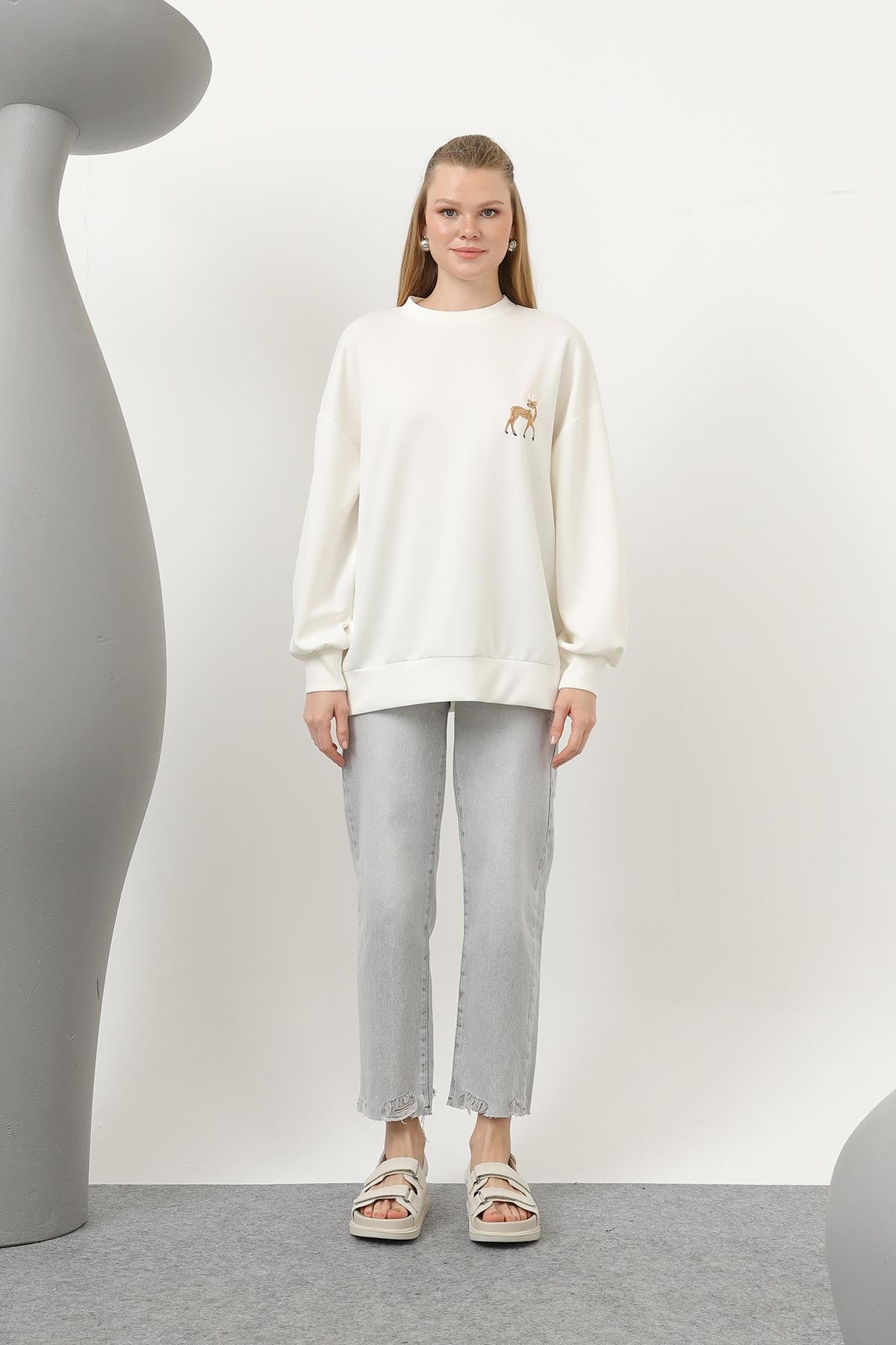 Arkası Geyik Baskılı Kısa Tunik 32118 - Ekru (362251911)