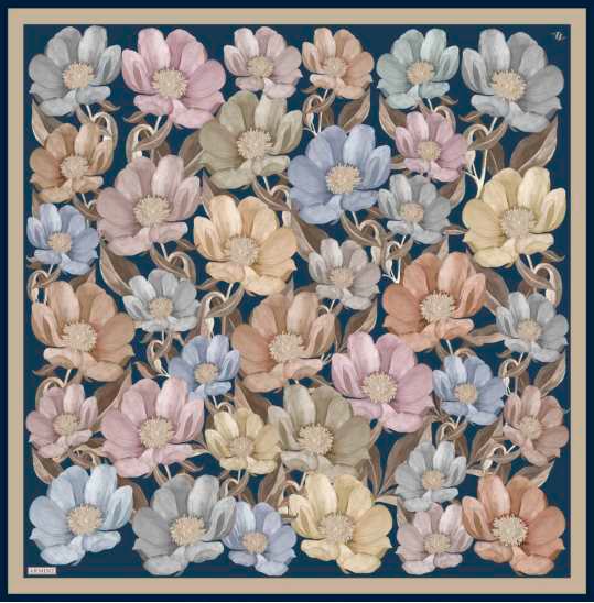 Armine Dj Saf İpek Eşarp 9403D (T) - Lacivert Krem