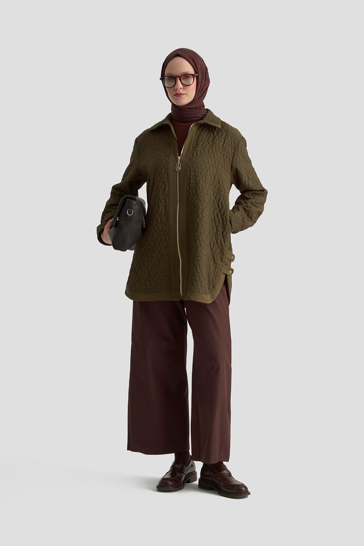 Armine Trend 25KT413 Oval Kesim Fermuarlı Kap - Yağ Yeşili