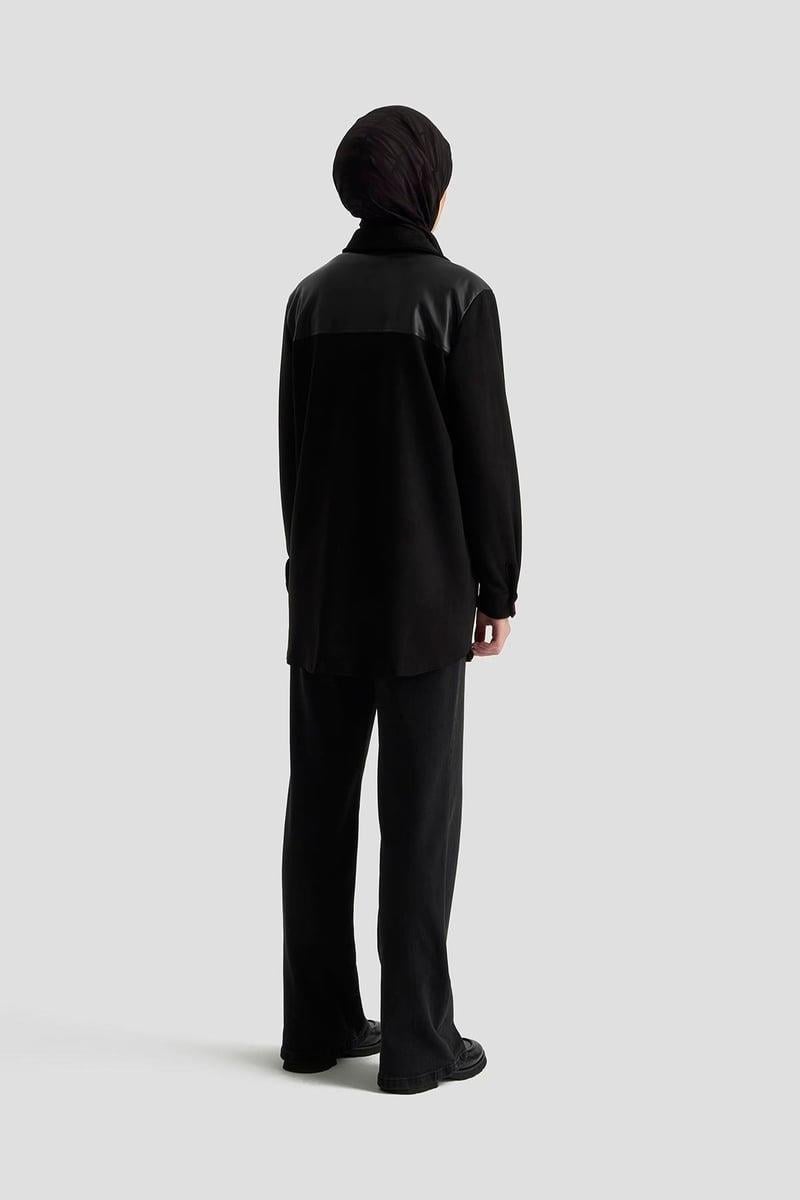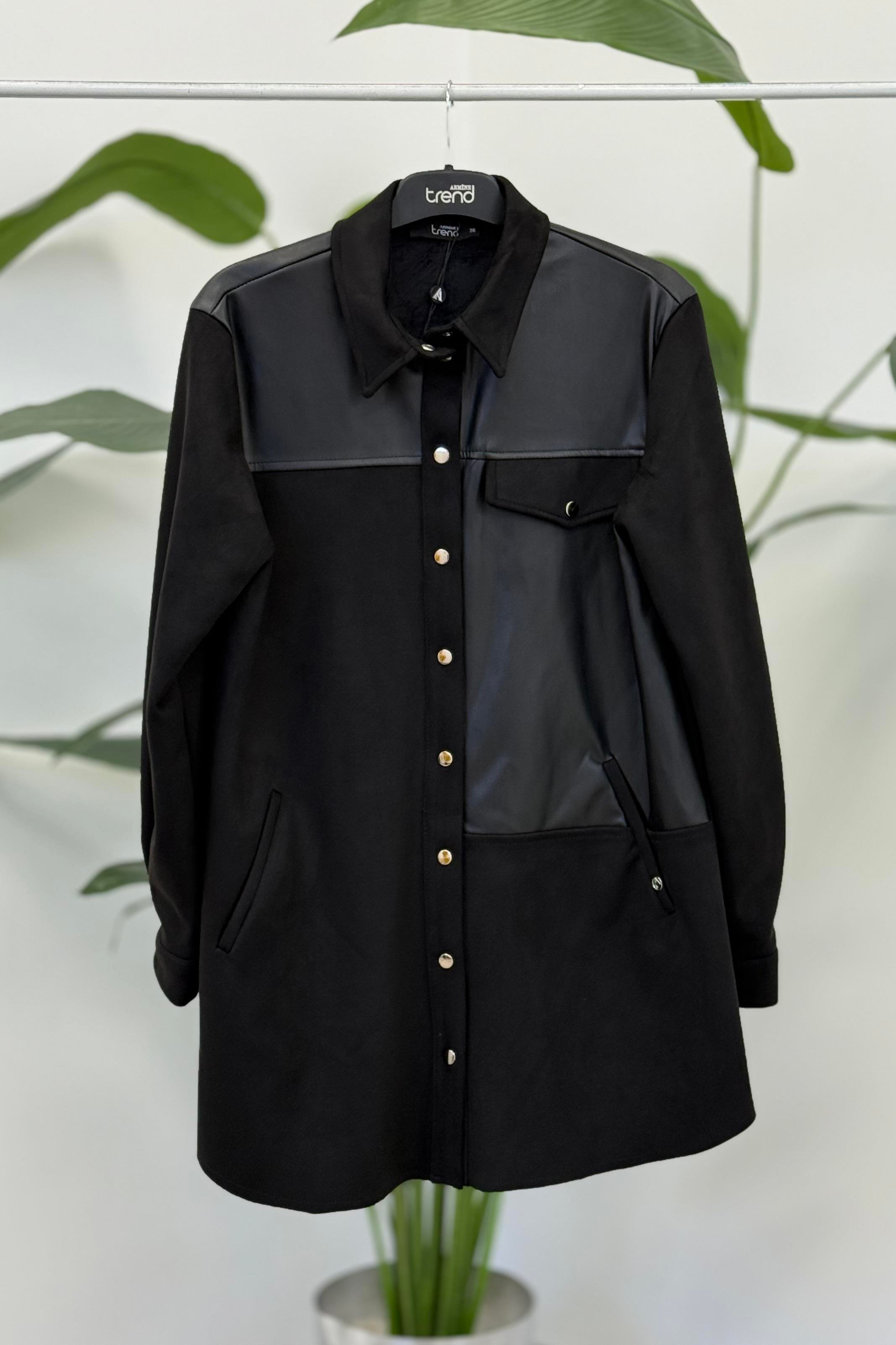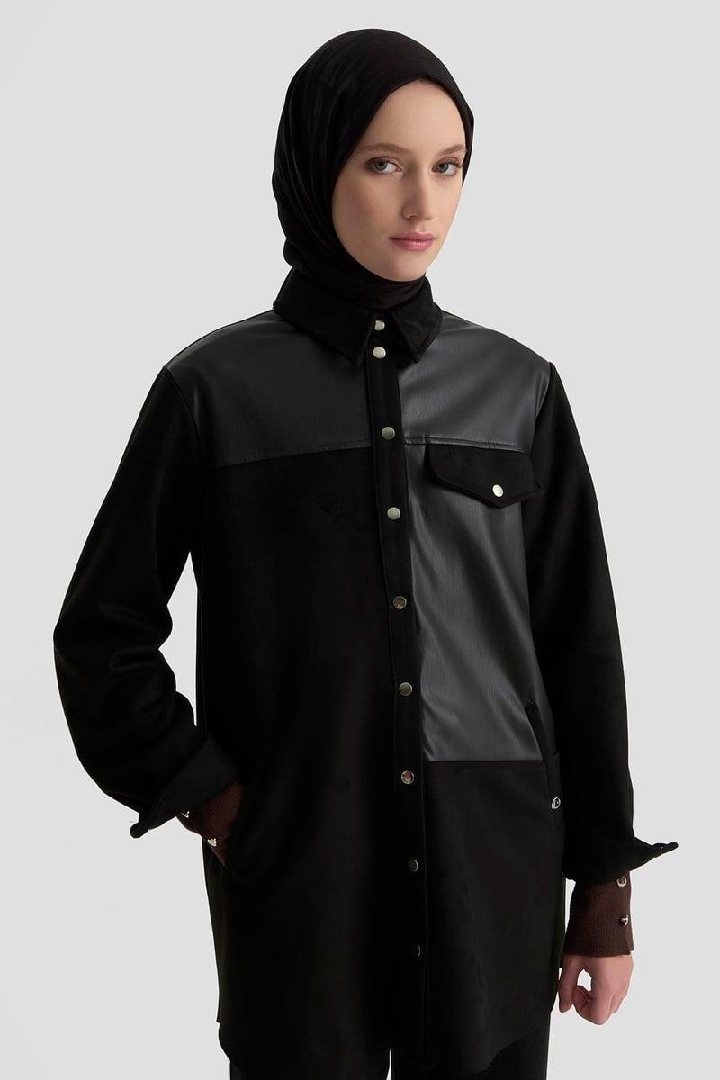 Armine Trend 25KT418 Deri Geçişli Süvet Detay Kap - Siyah (378344909)