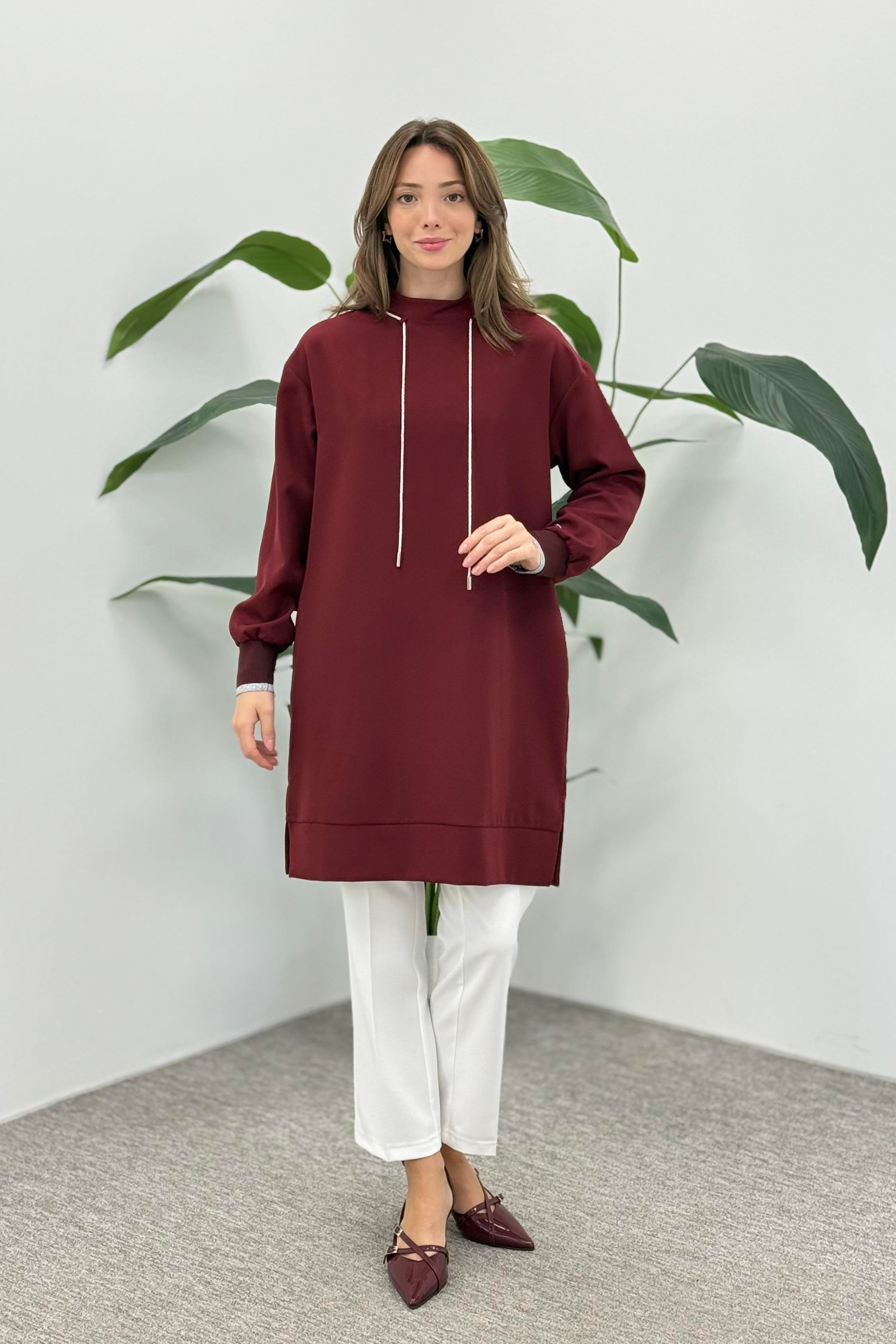 Armine Trend 25KT436 Yaka İp Detay Tunik - Bordo (362344925)