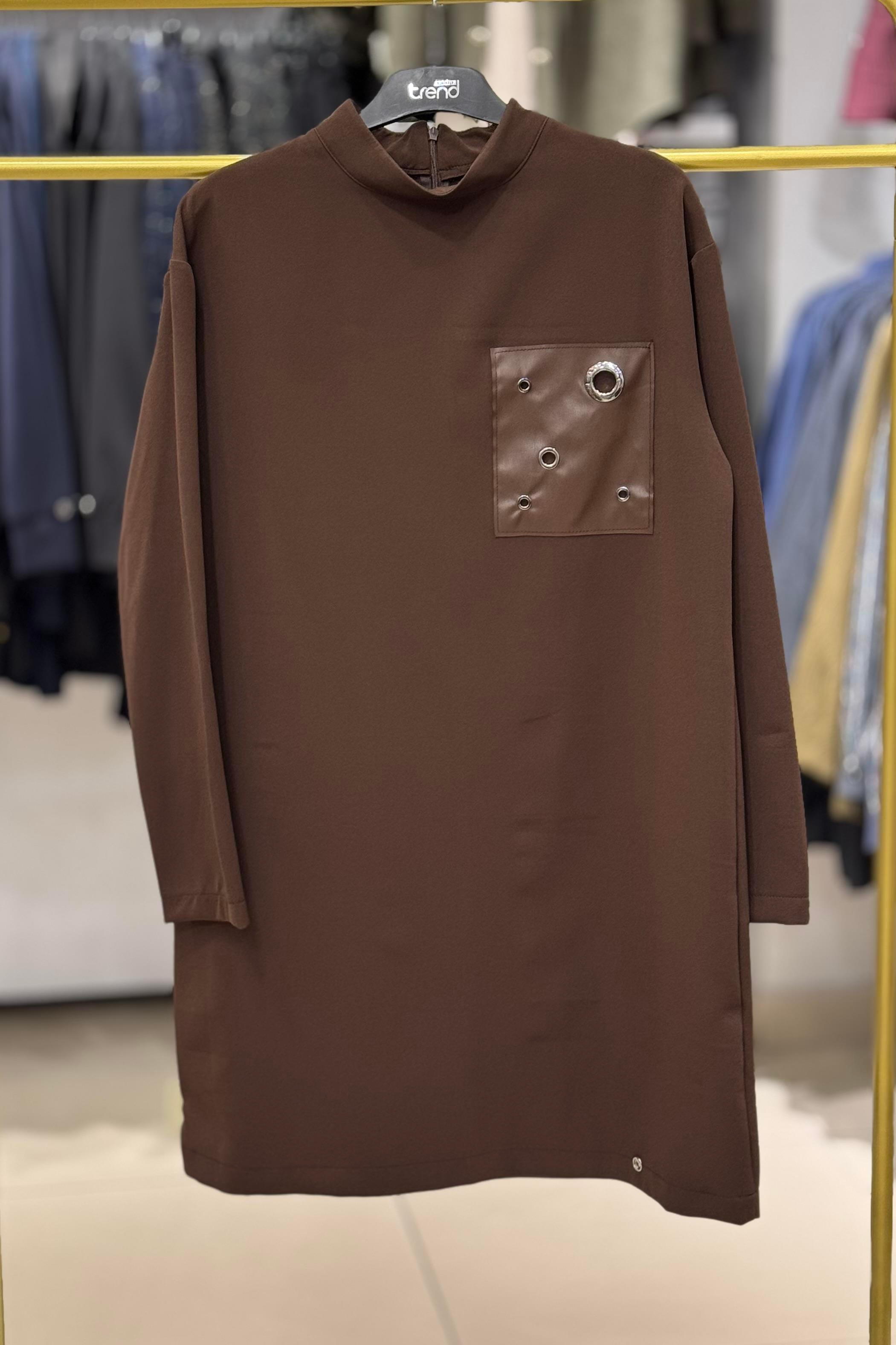 Armine Trend 25KT438 Derisi Kuş Gözü Detay Tunik - Kahverengi