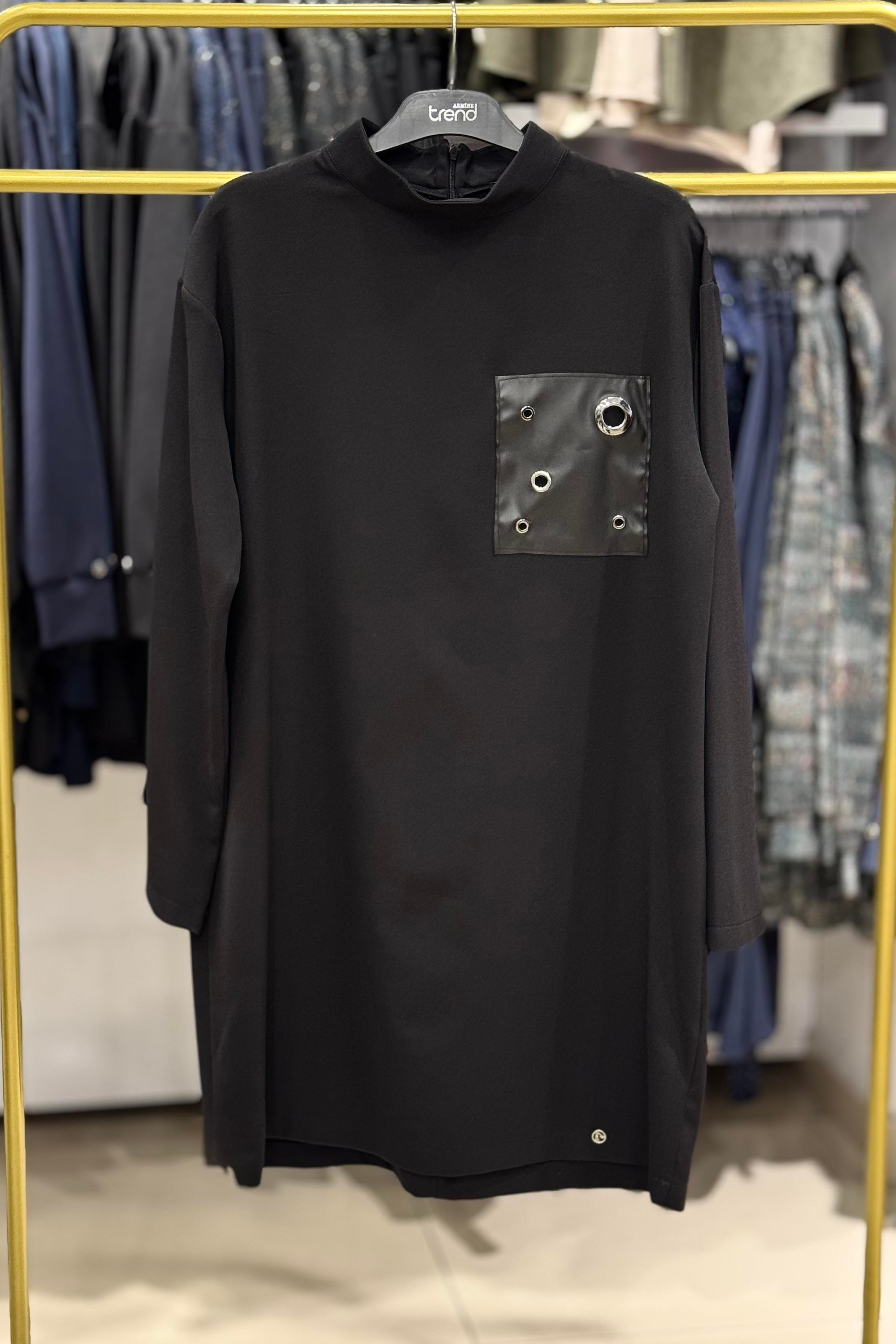 Armine Trend 25KT438 Derisi Kuş Gözü Detay Tunik - Siyah