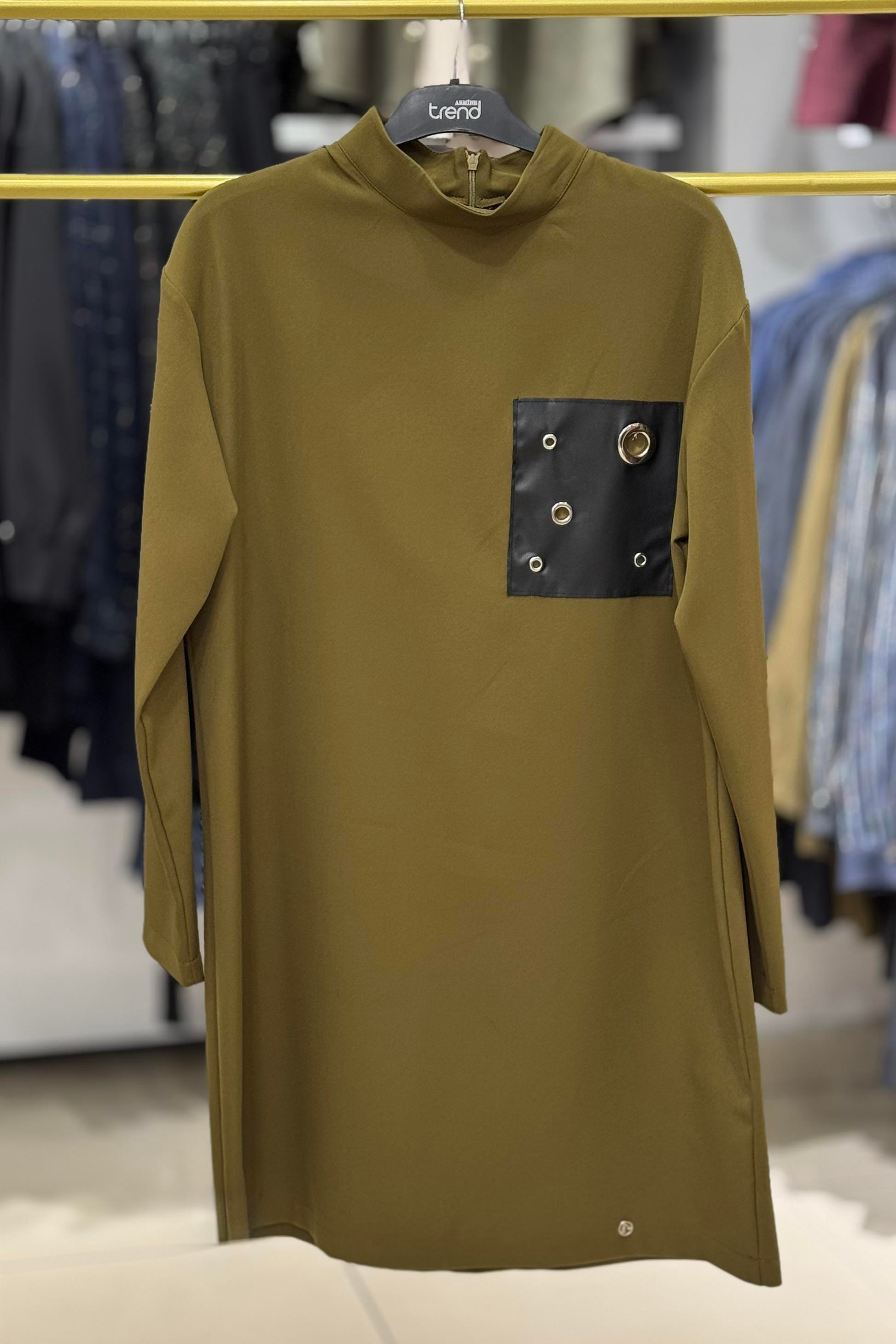 Armine Trend 25KT438 Derisi Kuş Gözü Detay Tunik - Yağ Yeşili