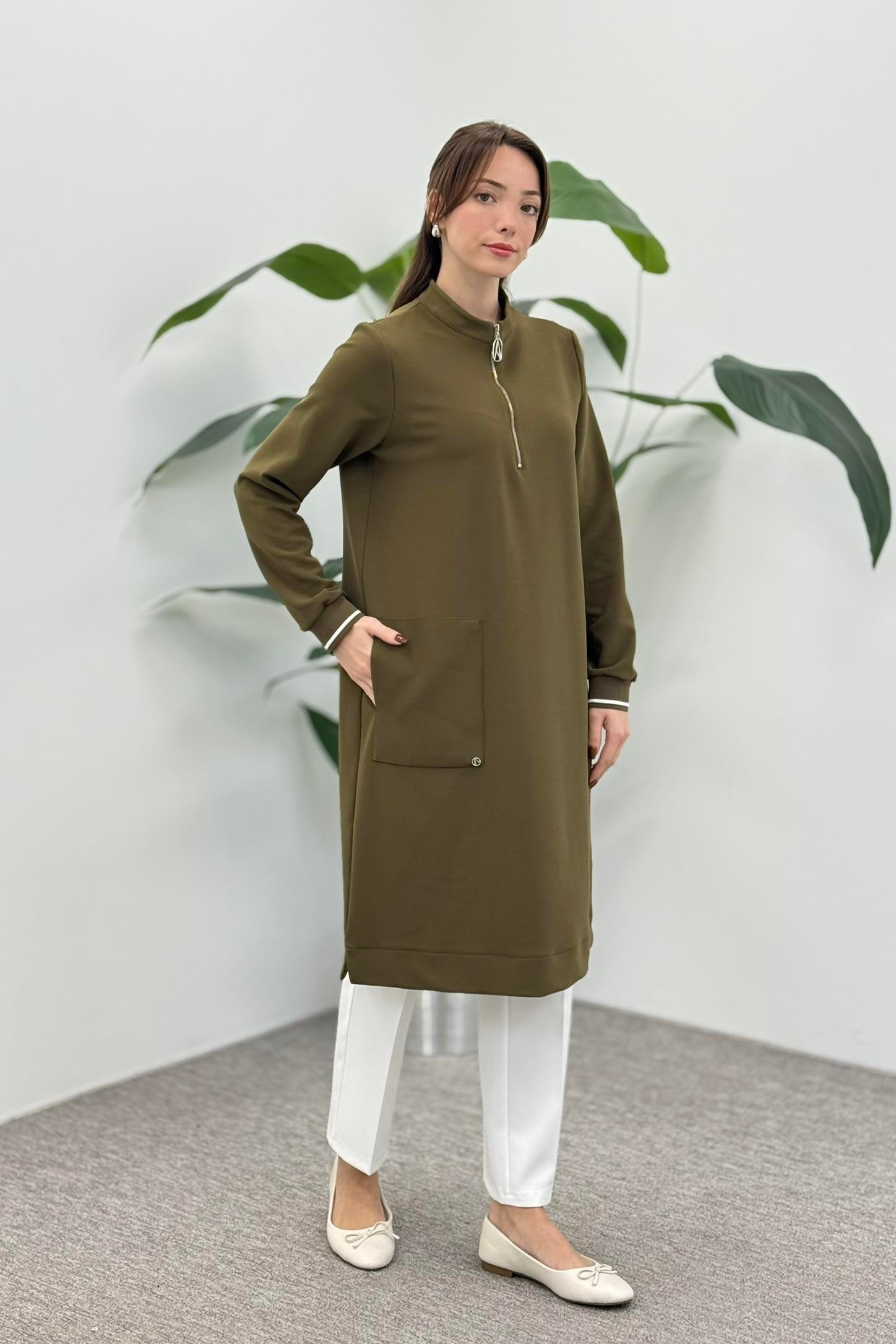 Armine Trend 25KT443 Tek Cep Detay Tunik - Haki