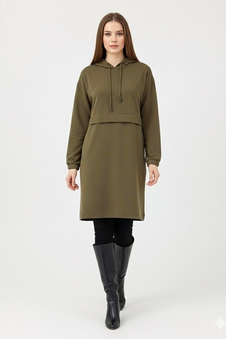 Armine Trend 25KT462 Ön Kat Detay Kapişonlu Tunik - Haki