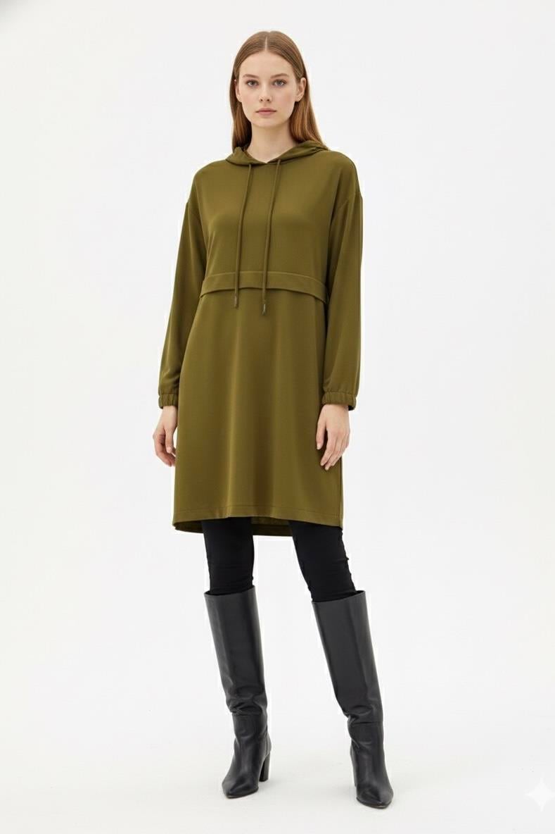 Armine Trend 25KT462 Ön Kat Detay Kapişonlu Tunik - Yağ Yeşili
