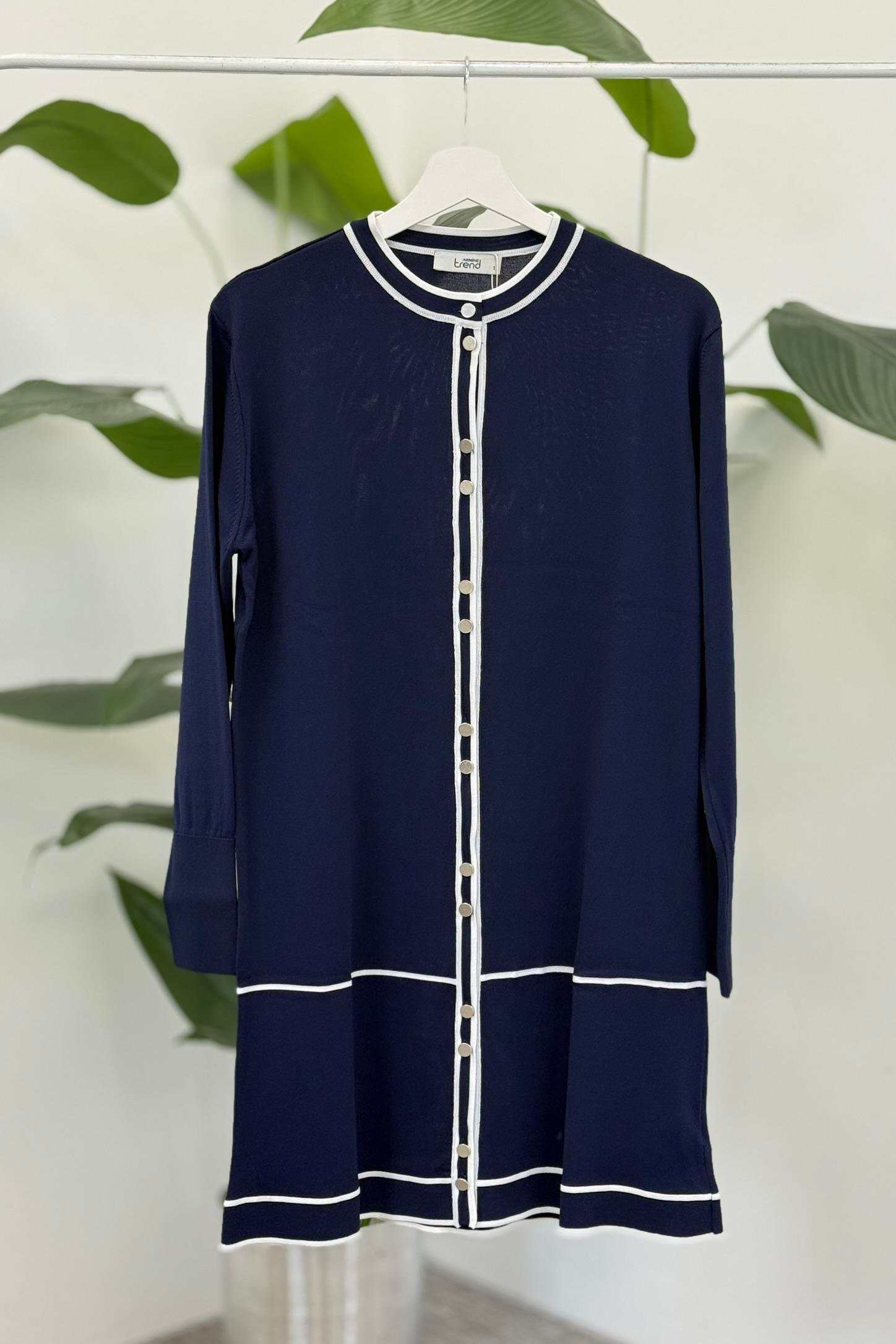 Armine Trend 25KT501 Çizgi Detay Düğmeli Hırka - Lacivert