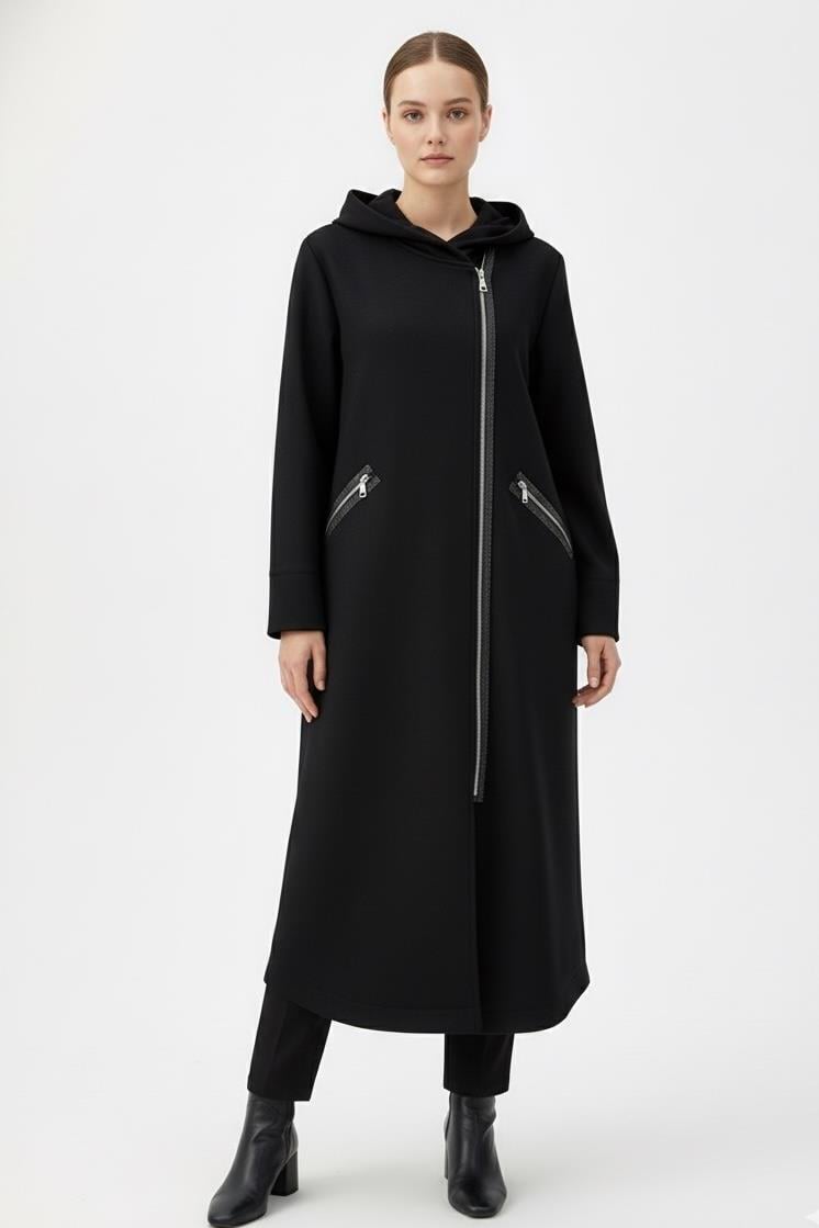 Armine Trend 25KT504 Fermuarları Parlak Biye Detay Kap - Siyah