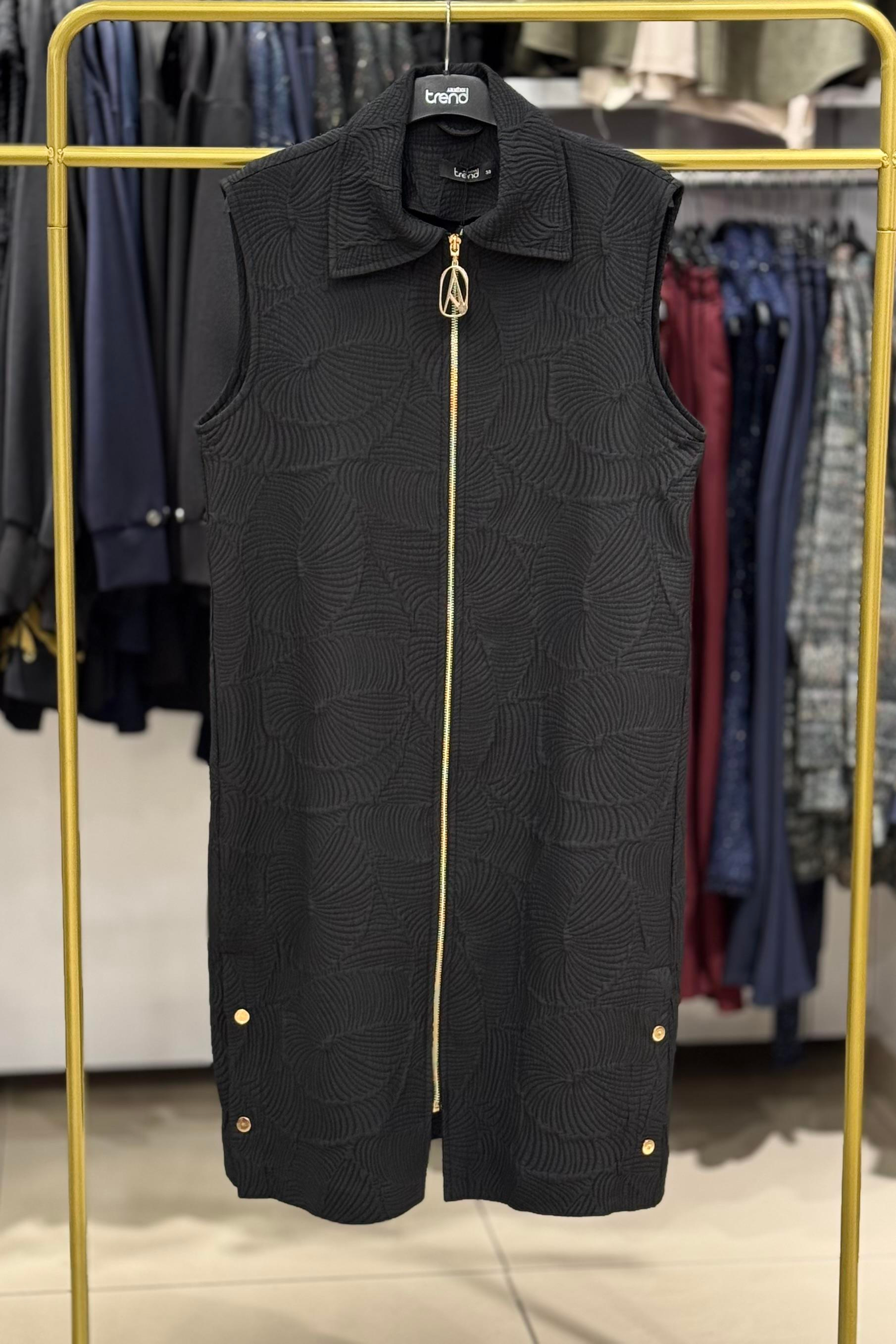 Armine Trend 25KT526 Kendinden Kabartmalı Yelek - Siyah