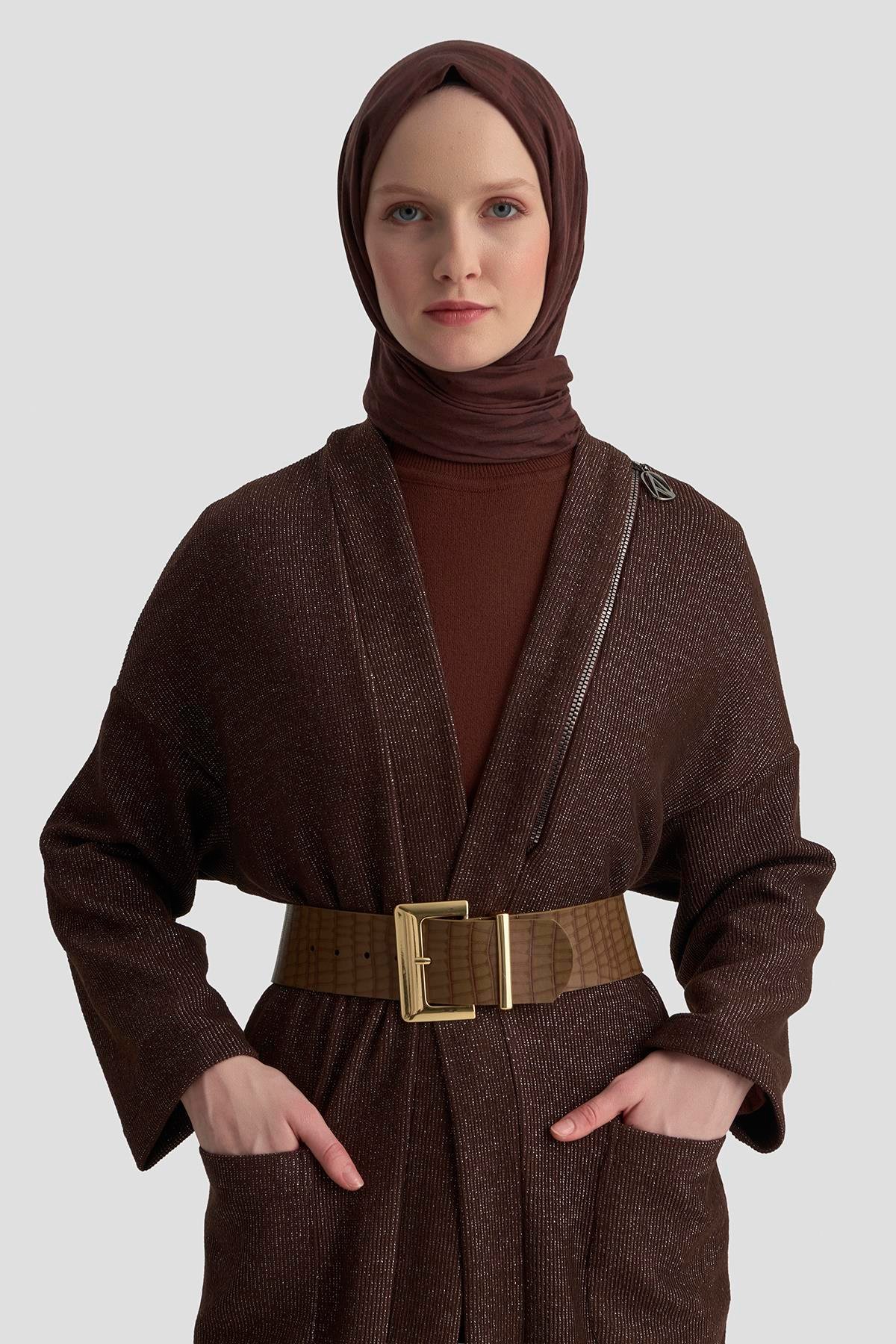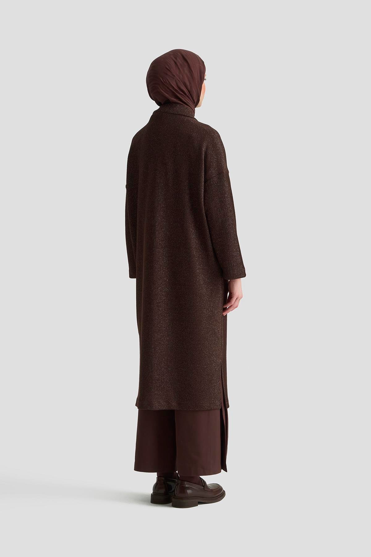 Armine Trend 25KT532 Omuz Fermuar Detay Hırka - Kahverengi (357344907)