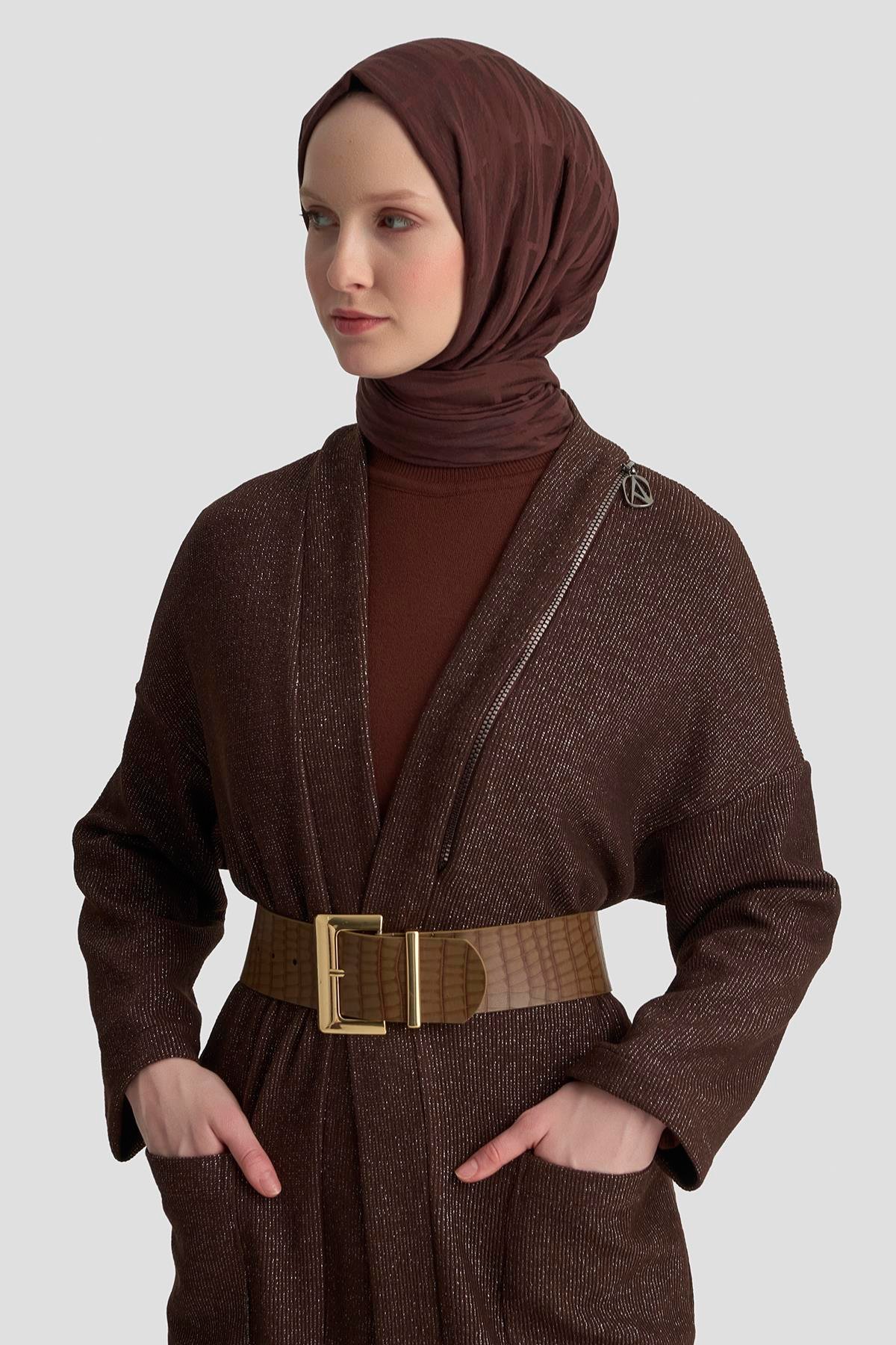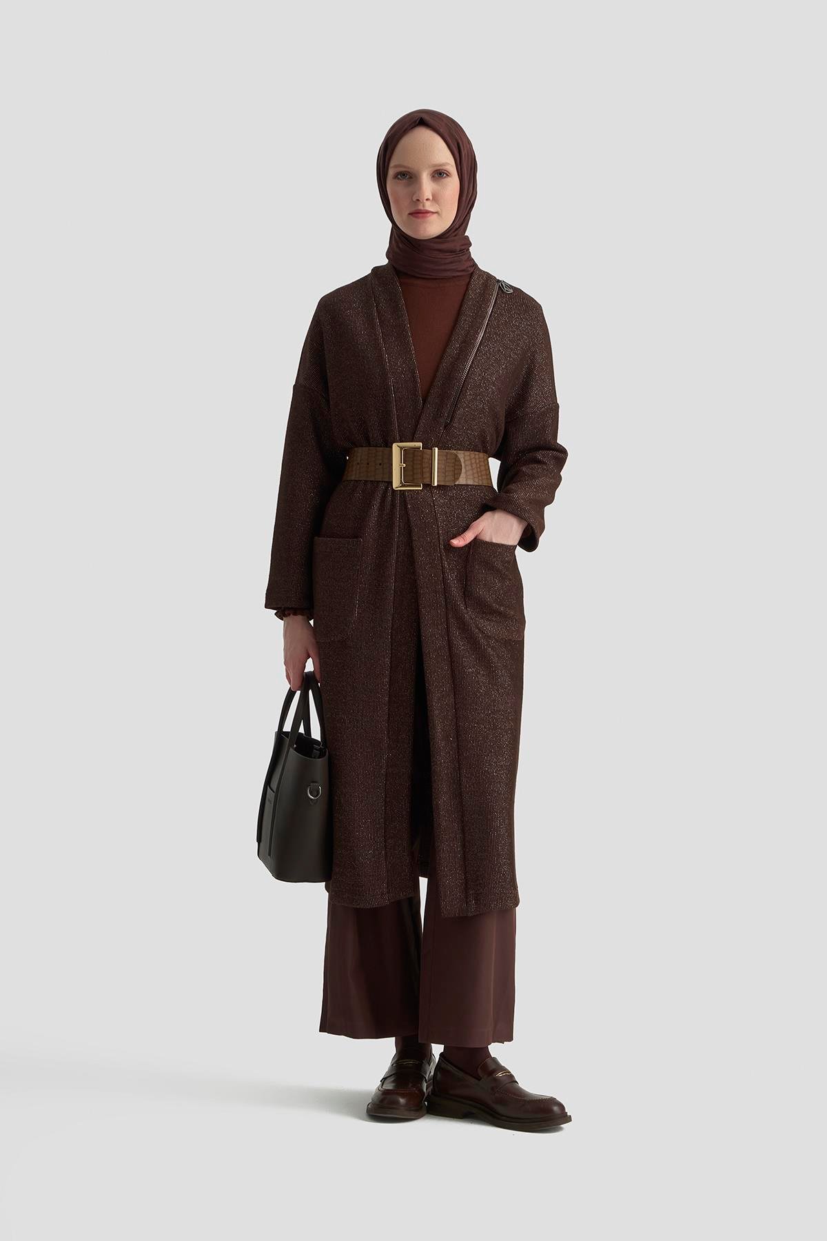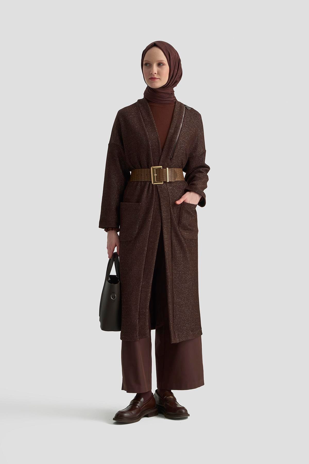 Armine Trend 25KT532 Omuz Fermuar Detay Hırka - Kahverengi