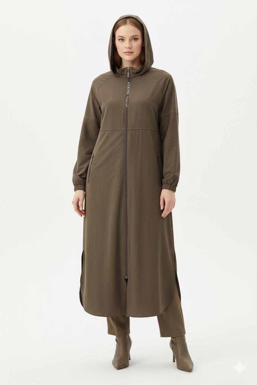 Armine Trend 25KT548 Yazı Detay Fermuarlı Uzun Kap - Vizon