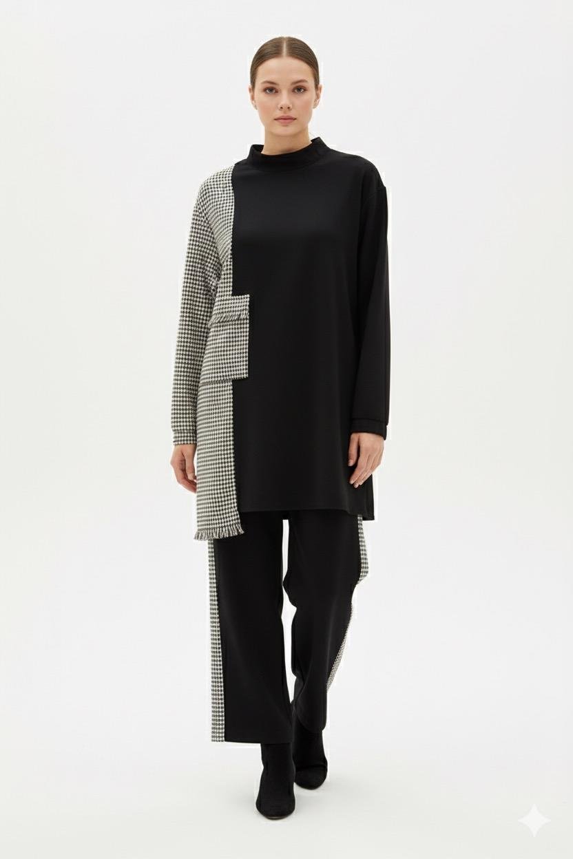 Armine Trend 25KT6104 Kazayağı Desen Pantolonlu Takım - Siyah