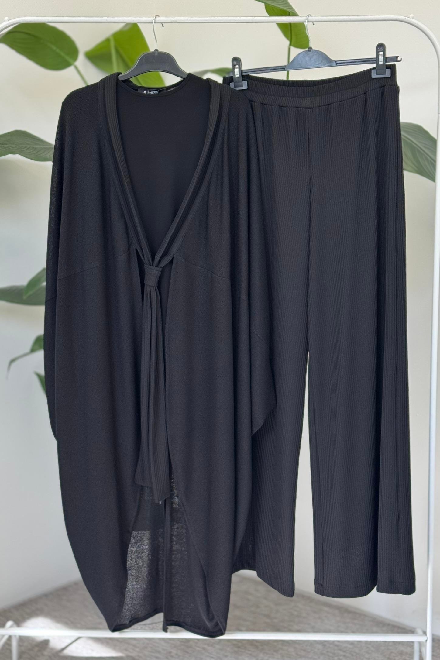 Armine Trend 25KT621 Hırka Detay 3 Lü Pantolonlu Takım - Siyah (350344933)