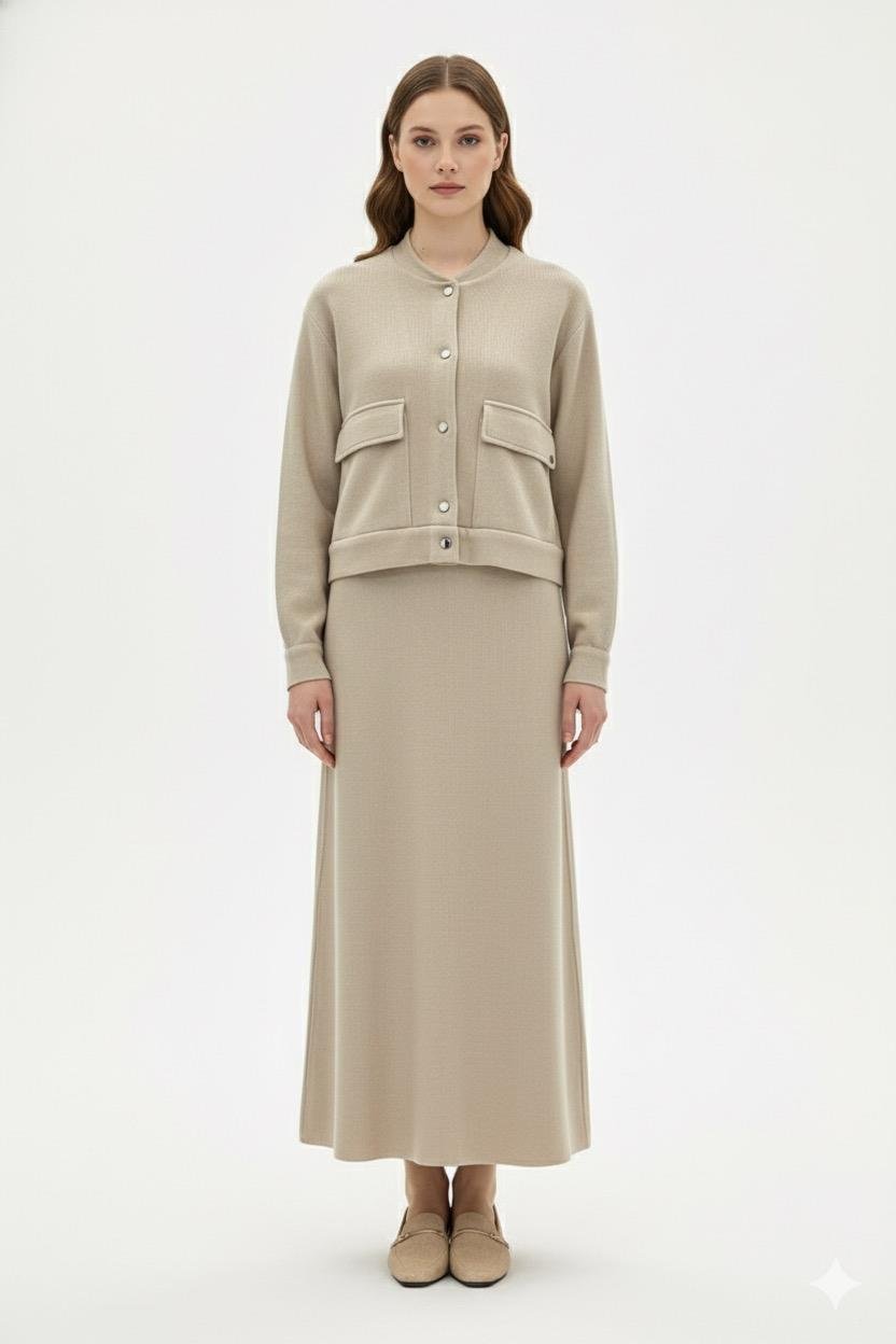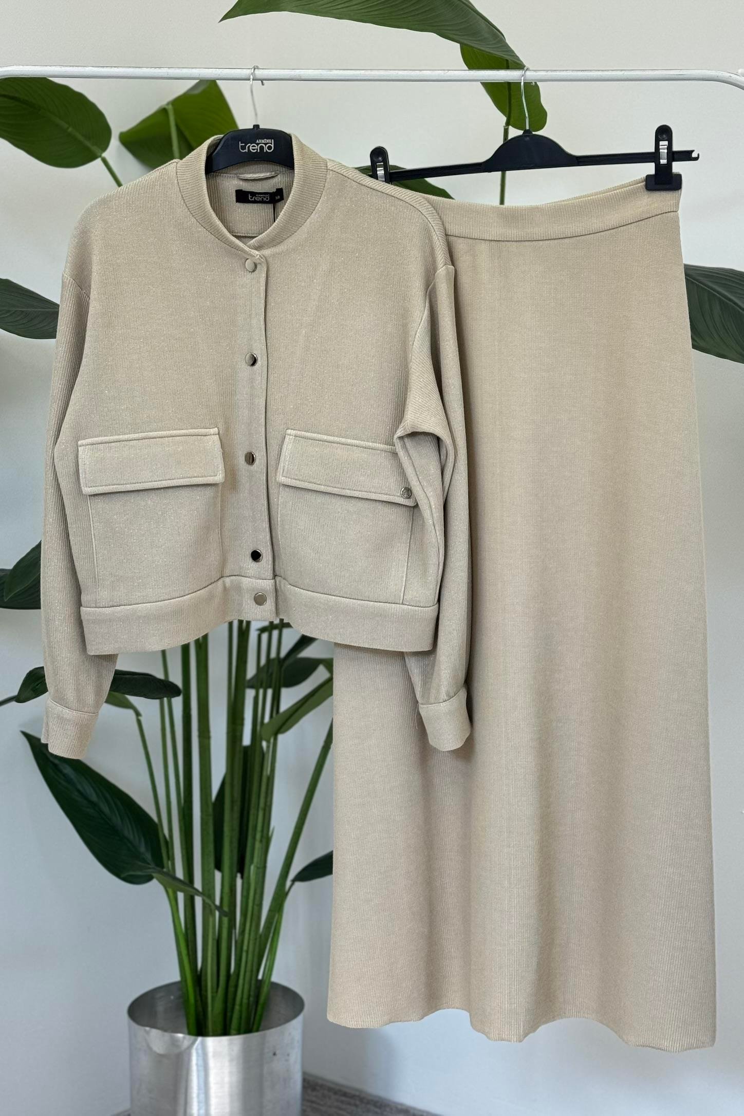 Armine Trend 25KT644 Kendinden Simli Etekli Takım - Bej