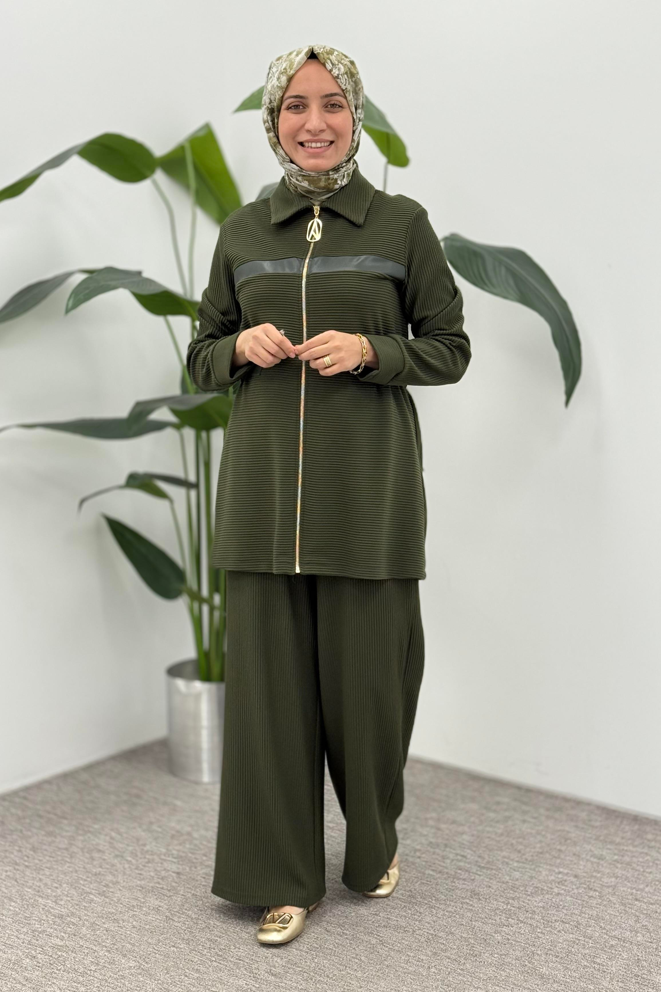 Armine Trend 25KT649 Kendinden Çizgili Pantolonlu Takım - Haki