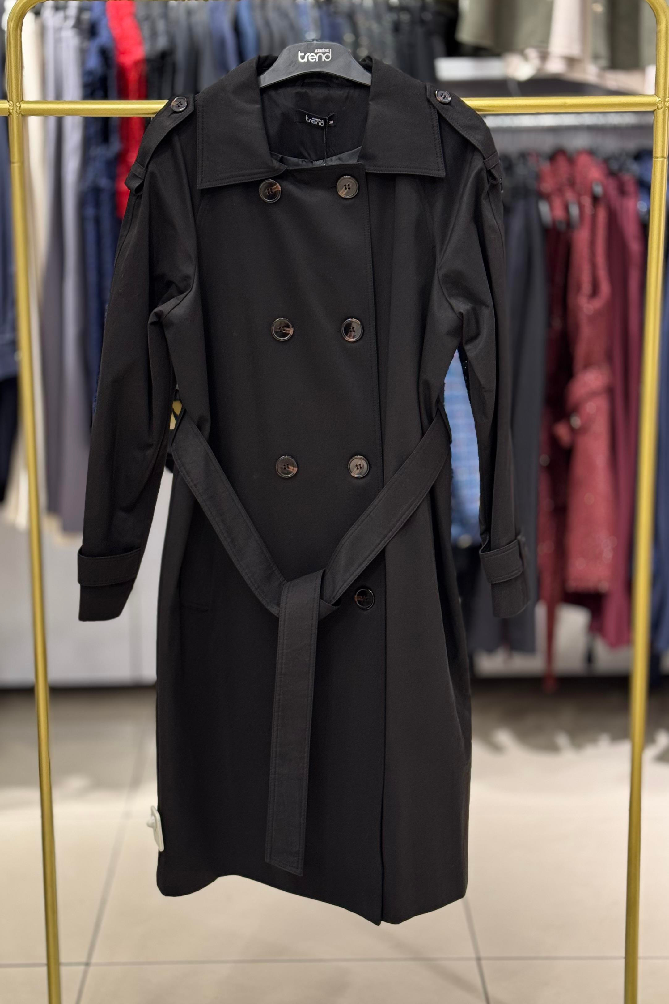 Armine Trend 25KT713 Çift Düğme Detay Trenç - Siyah