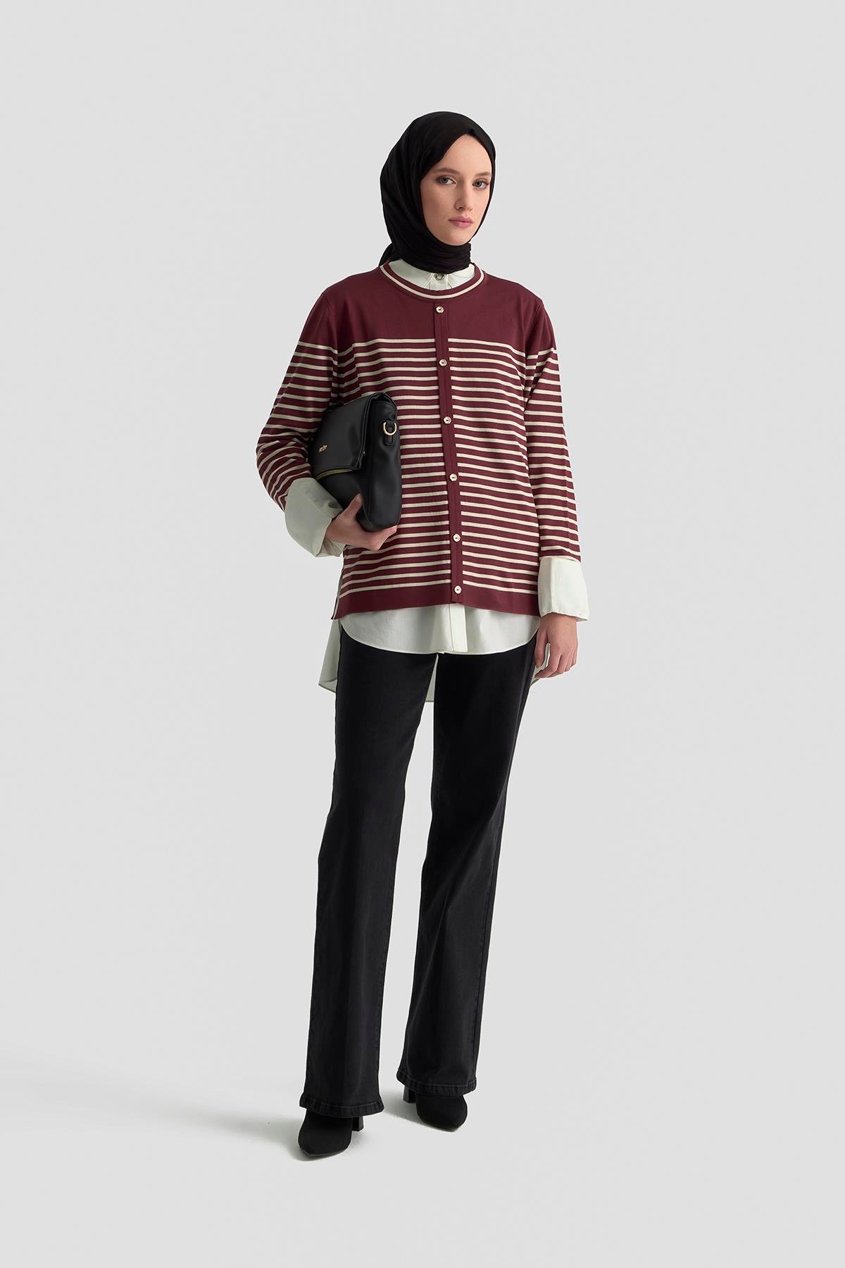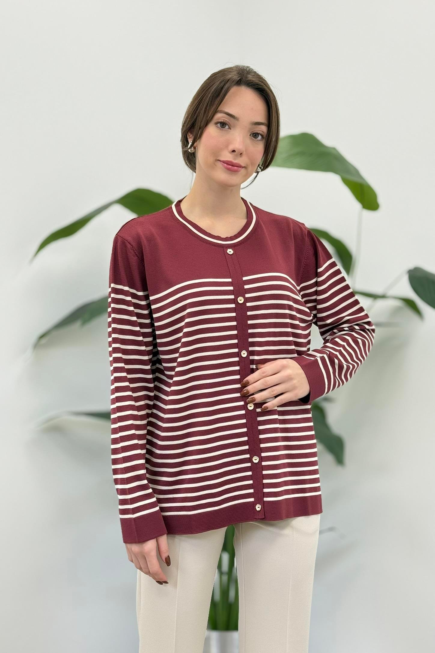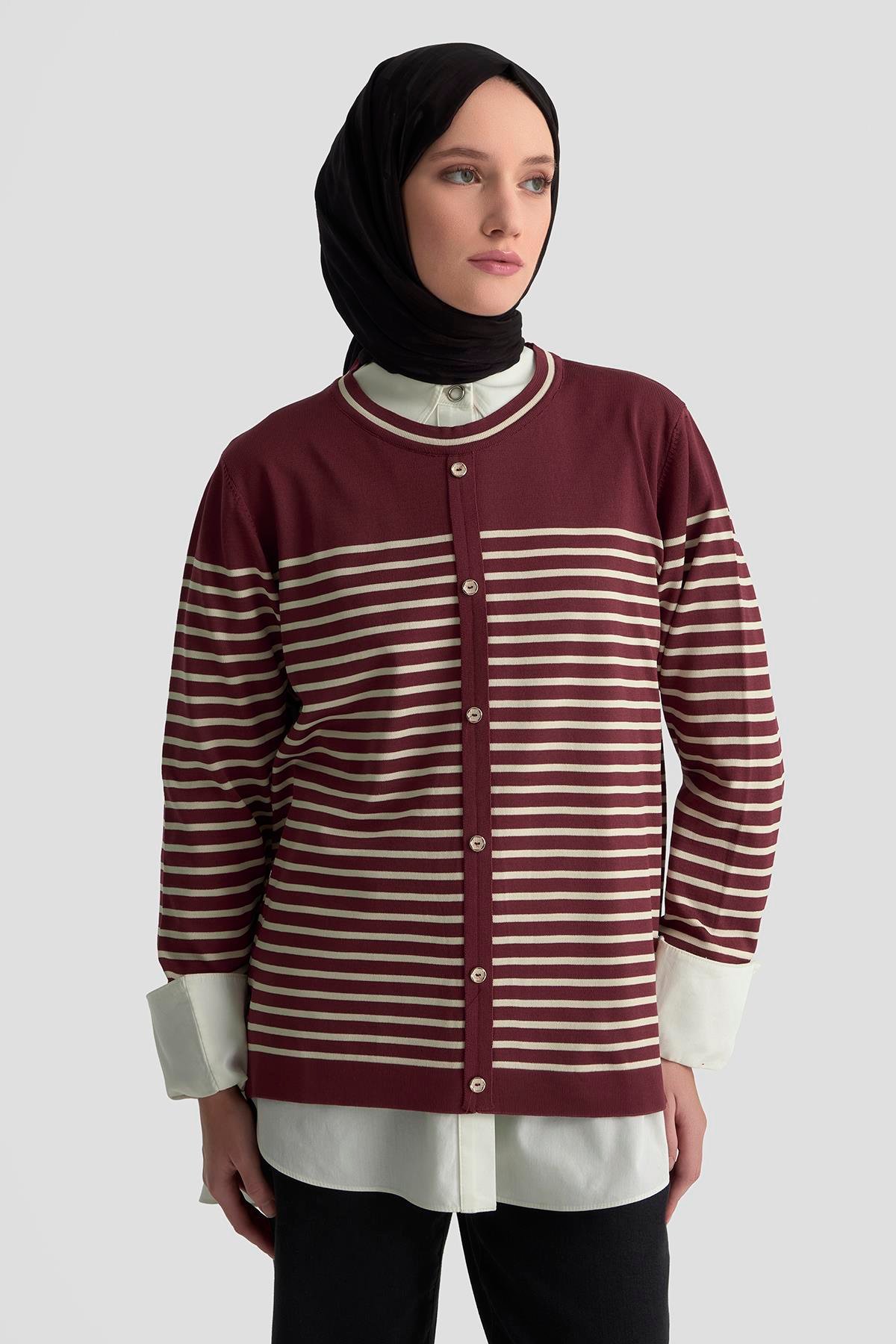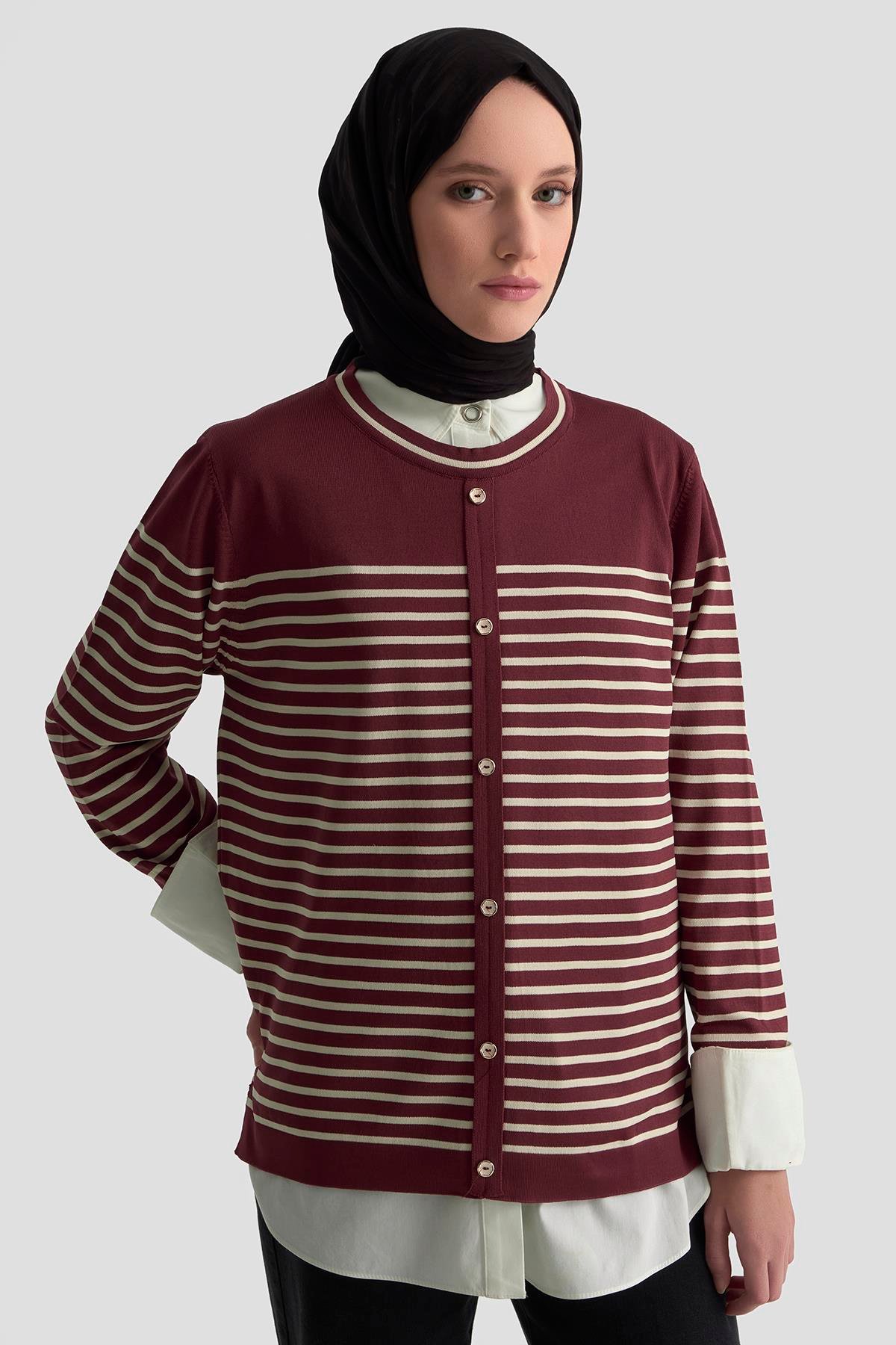 Armine Trend 25KTD4128 Çift Renk Detaylı Hırka - Bordo