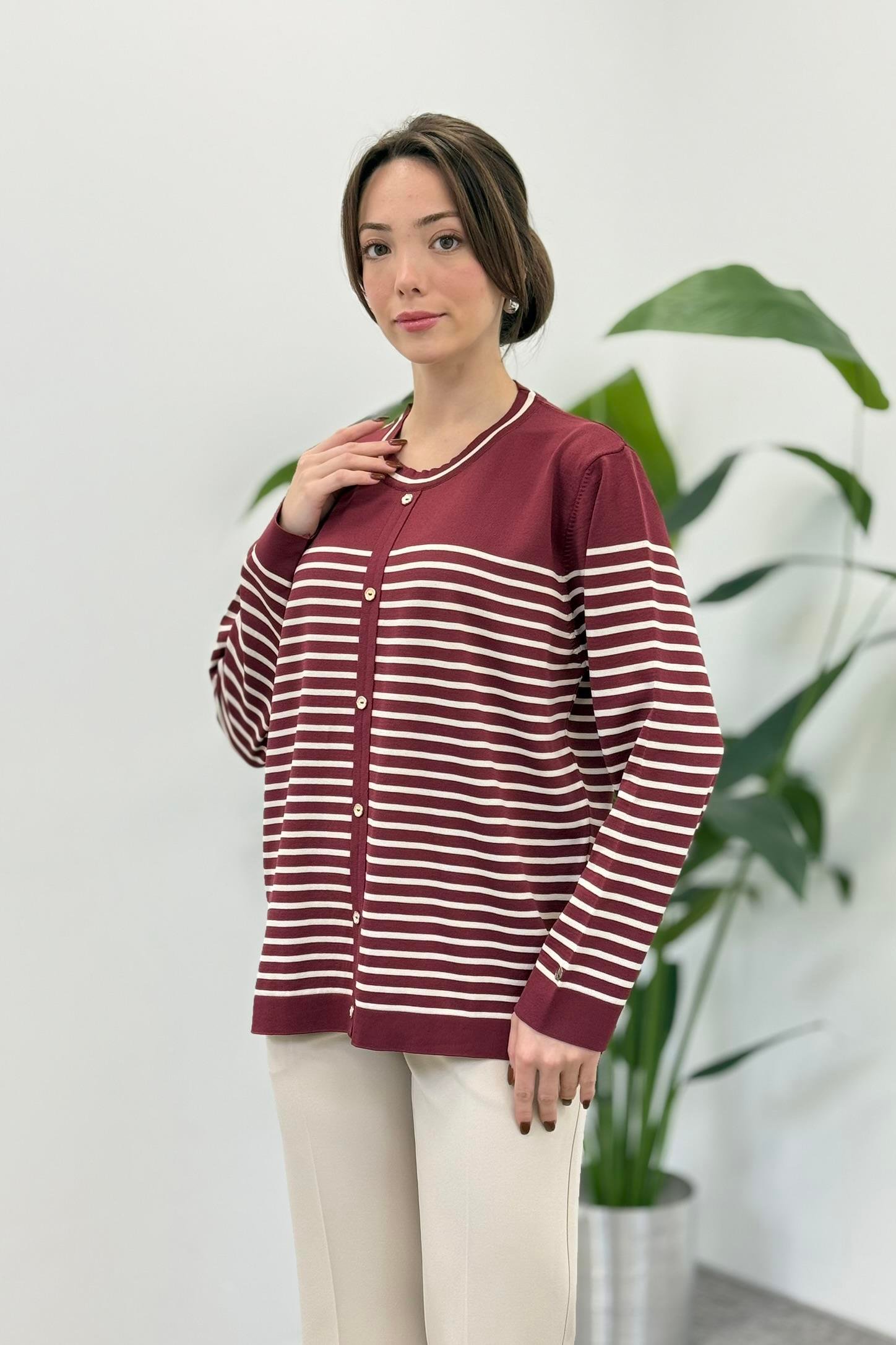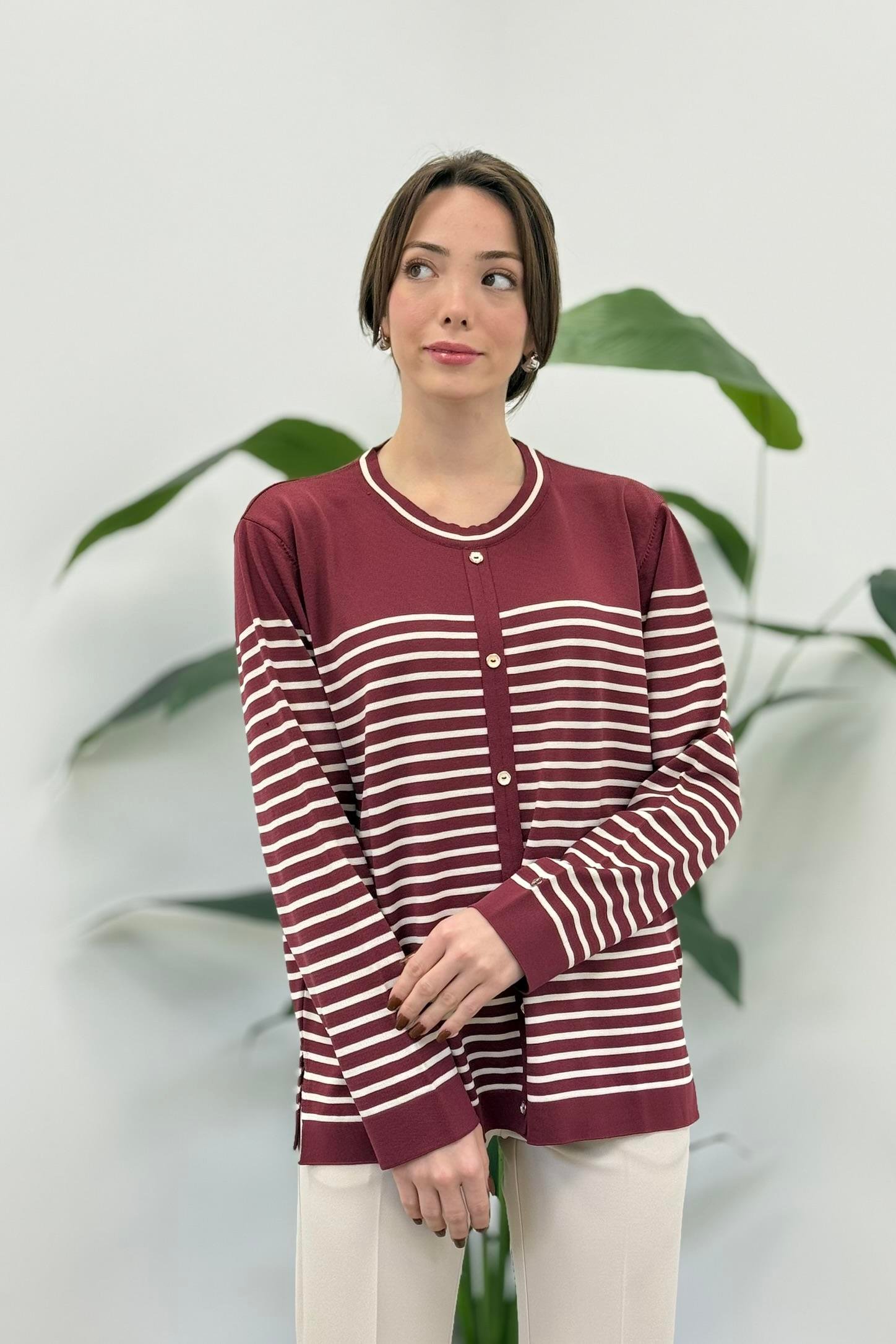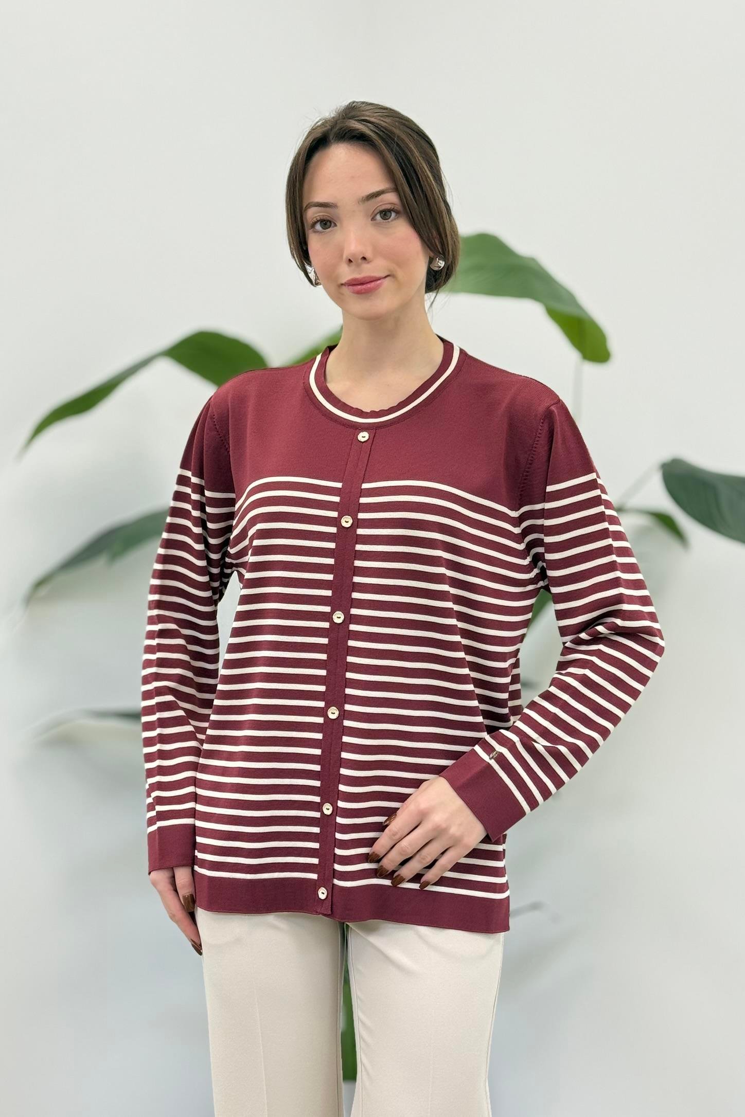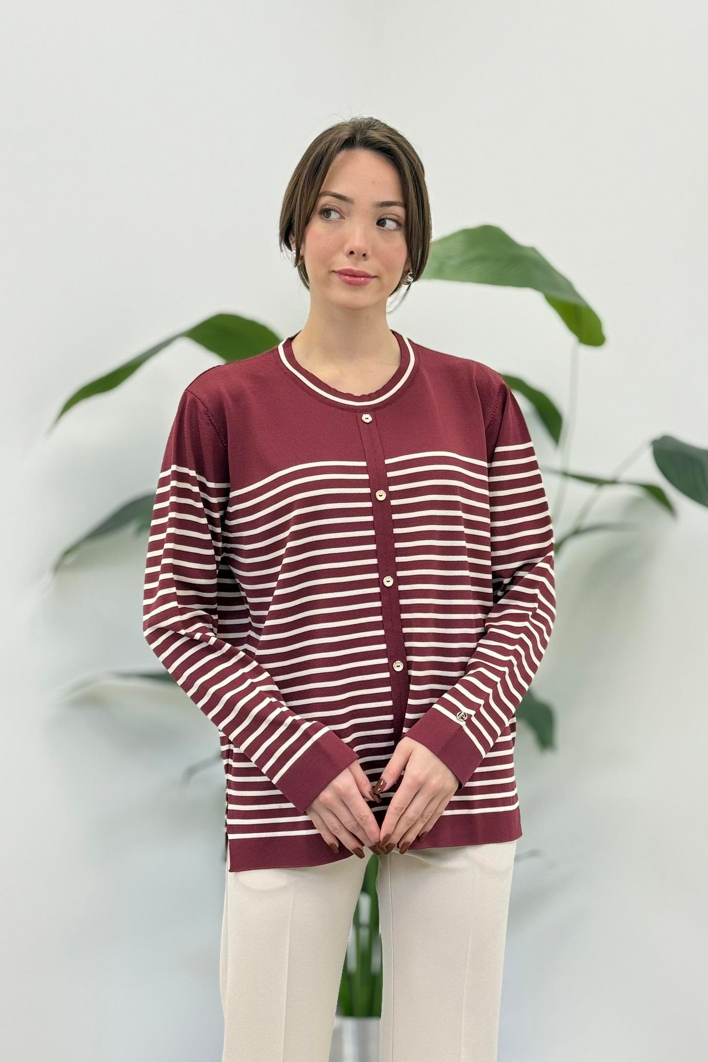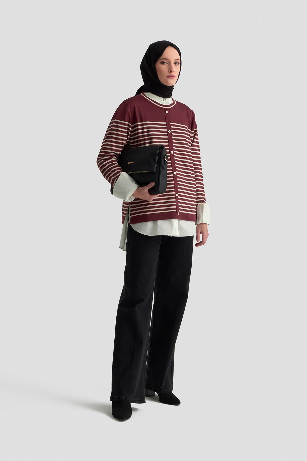 Armine Trend 25KTD4128 Çift Renk Detaylı Hırka - Bordo