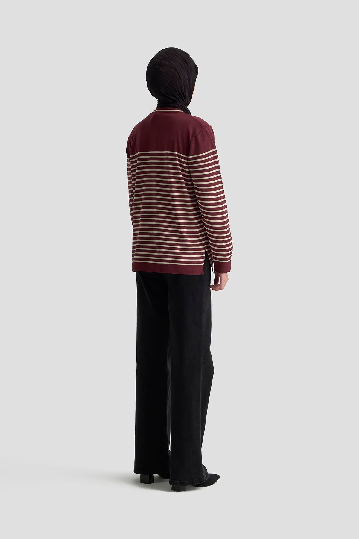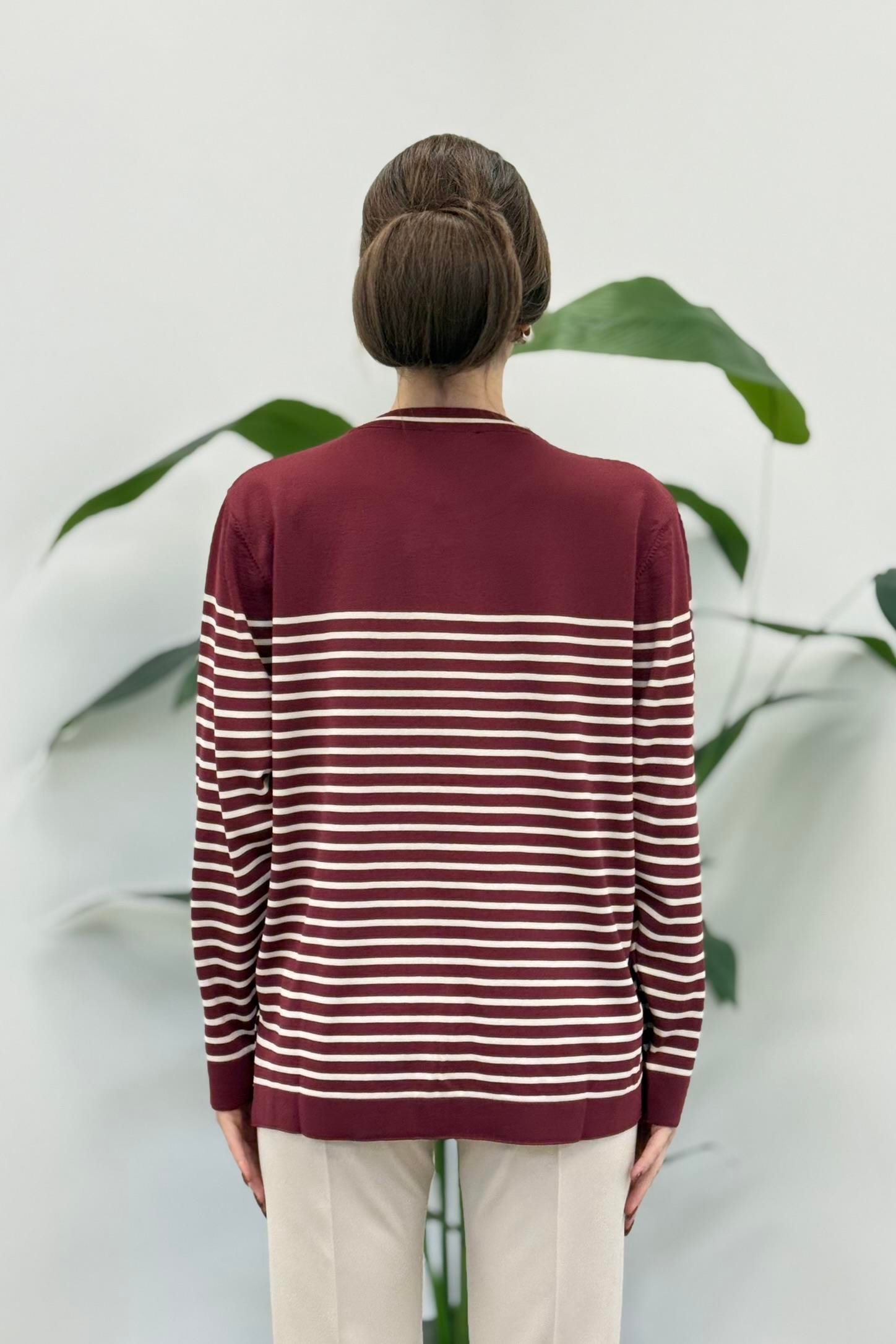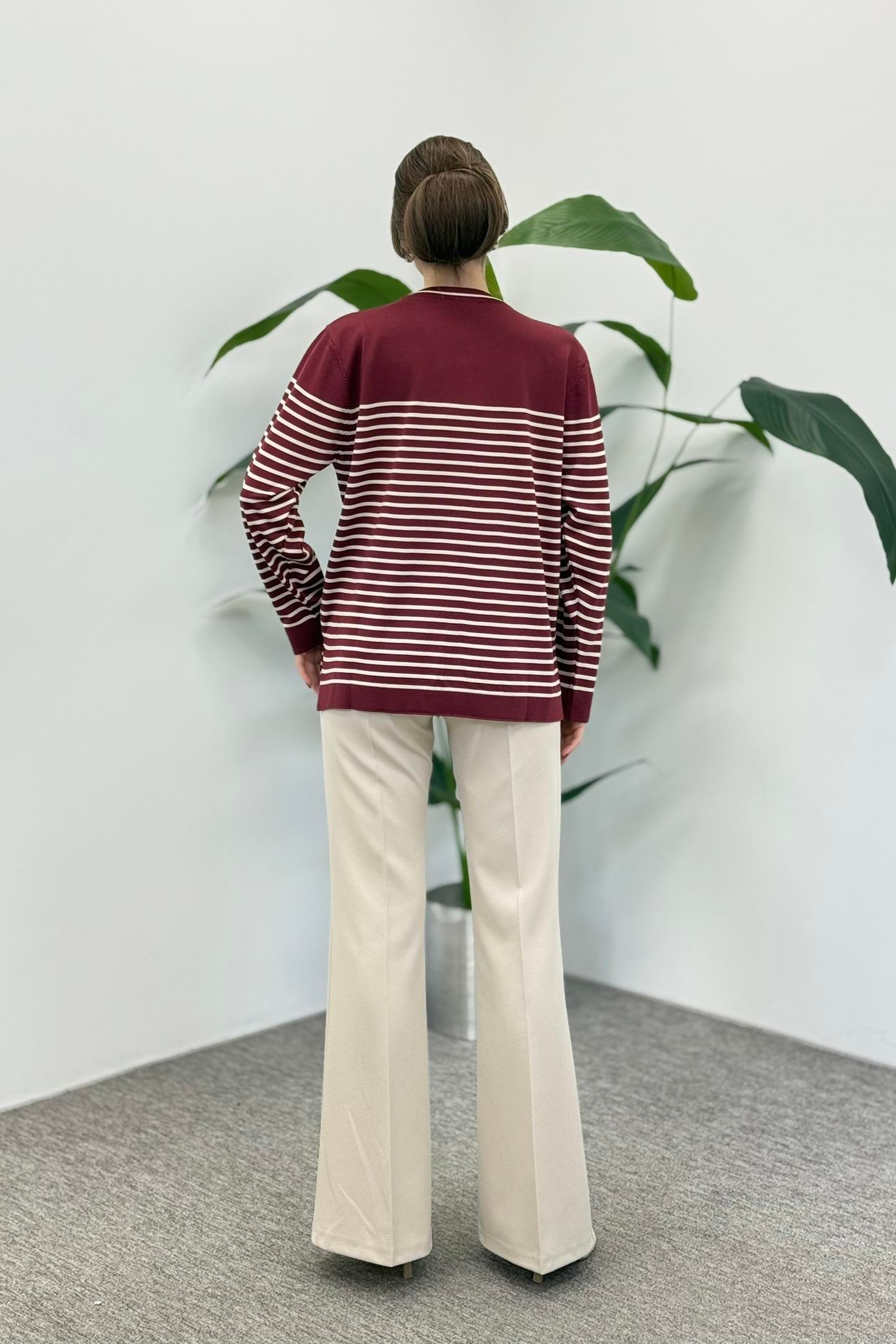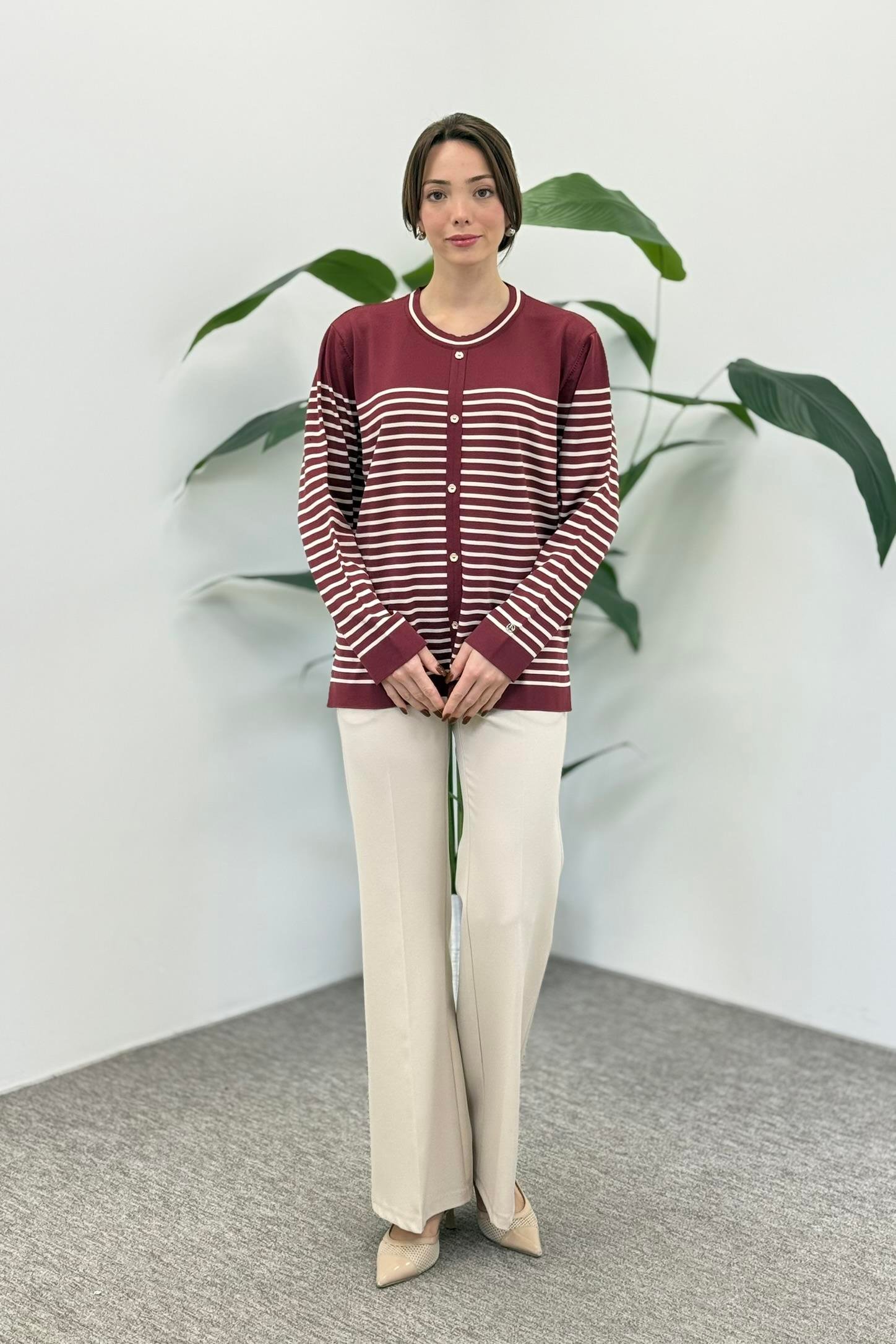 Armine Trend 25KTD4128 Çift Renk Detaylı Hırka - Bordo