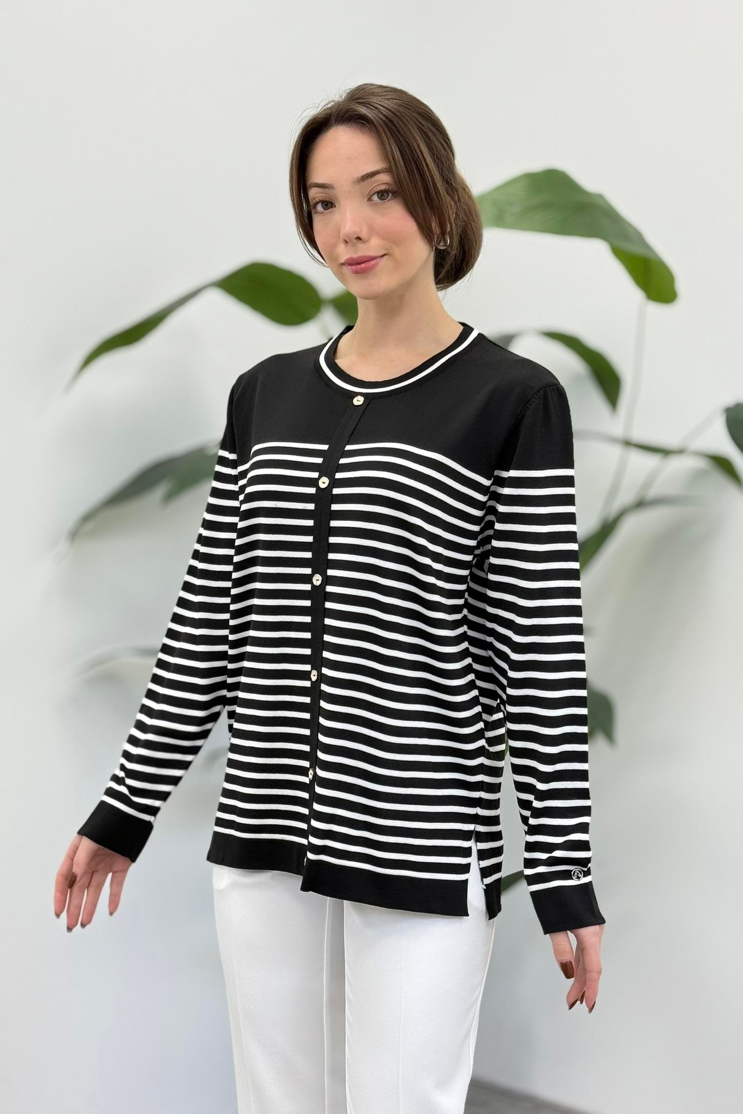 Armine Trend 25KTD4128 Çift Renk Detaylı Hırka - Siyah