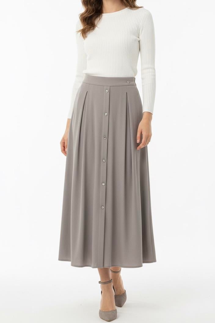 Armine Trend 25YT113 Önden Düğme Görünümlü Etek - Gri (360344900)