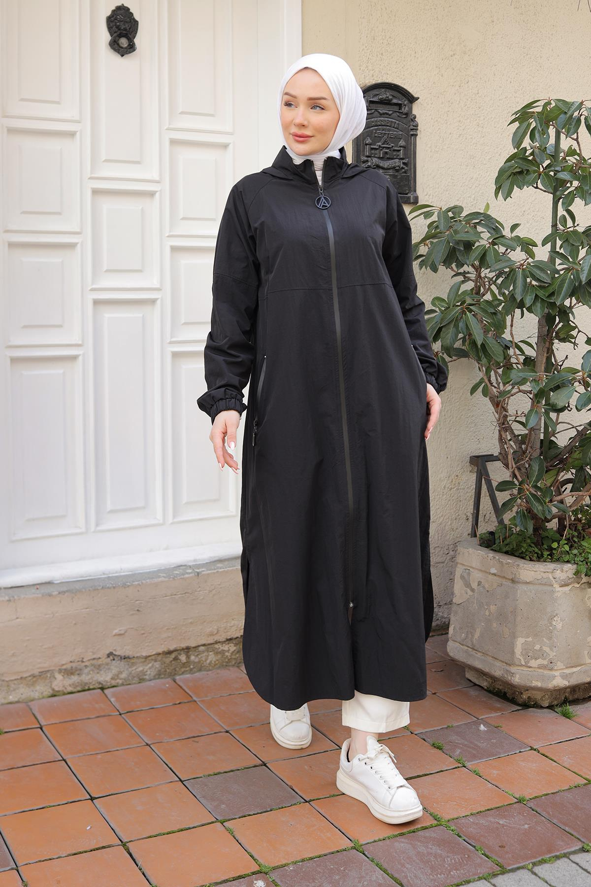 Armine Trend 25YT517 Cep Fermuar Detay Kapişonlu Kap - Siyah (378344805)