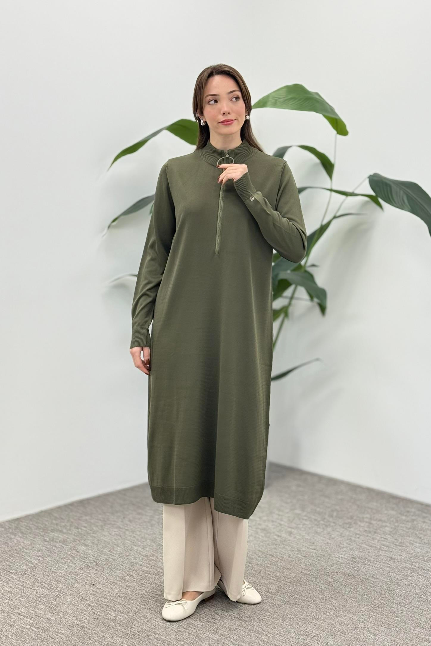 Armine Trend 25YTD4113 Yarım Fermuarlı Tunik - Haki