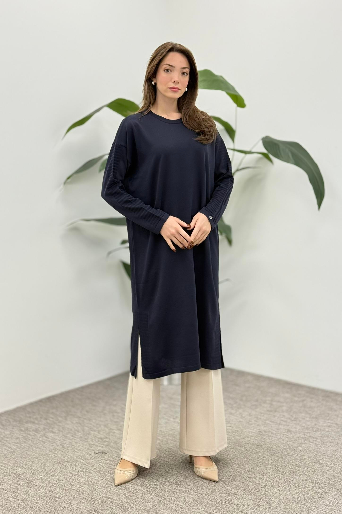 Armine Trend 25YTD4117 Kol Çizgi Detay Tunik - Lacivert