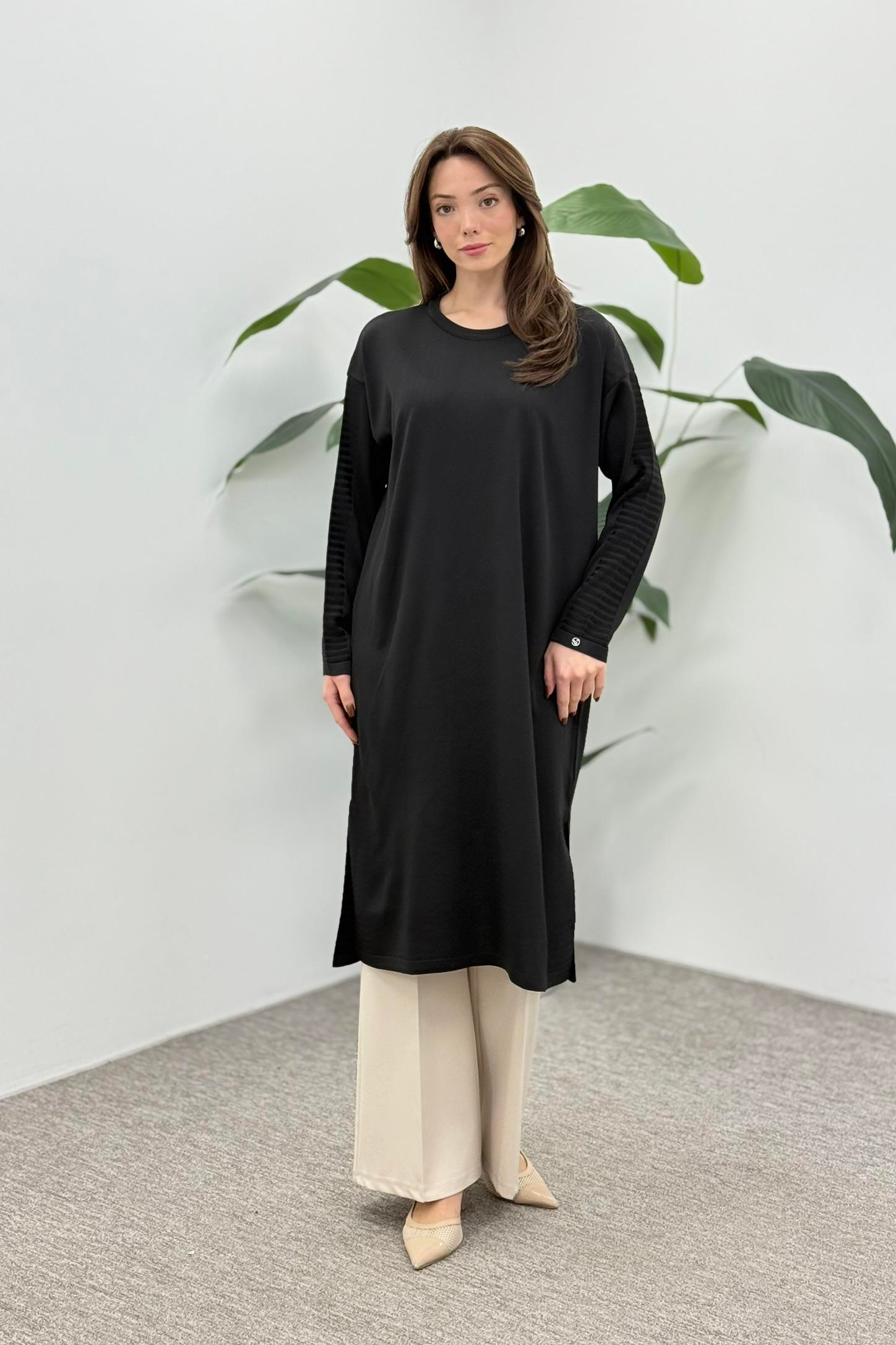 Armine Trend 25YTD4117 Kol Çizgi Detay Tunik - Siyah