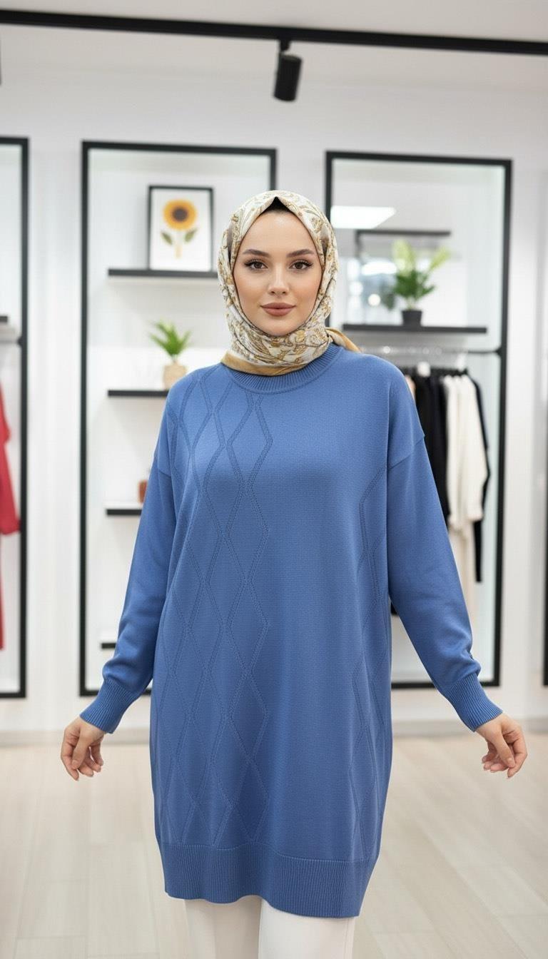Armine Trend 25YTD4118 Bir Yanı Baklava Desen Tunik - İndigo