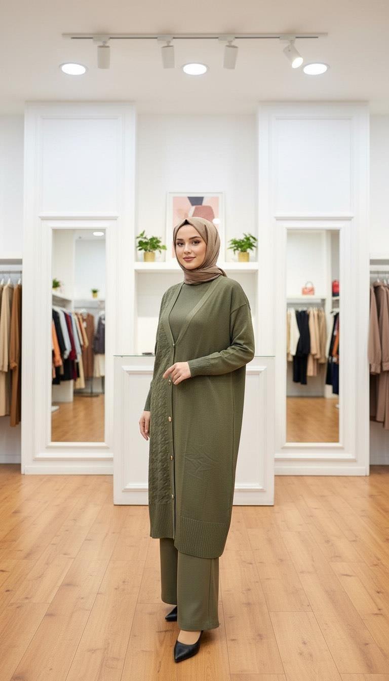 Armine Trend 25YTD4119 Kazayağı Desen Hırka - Haki (357344900)