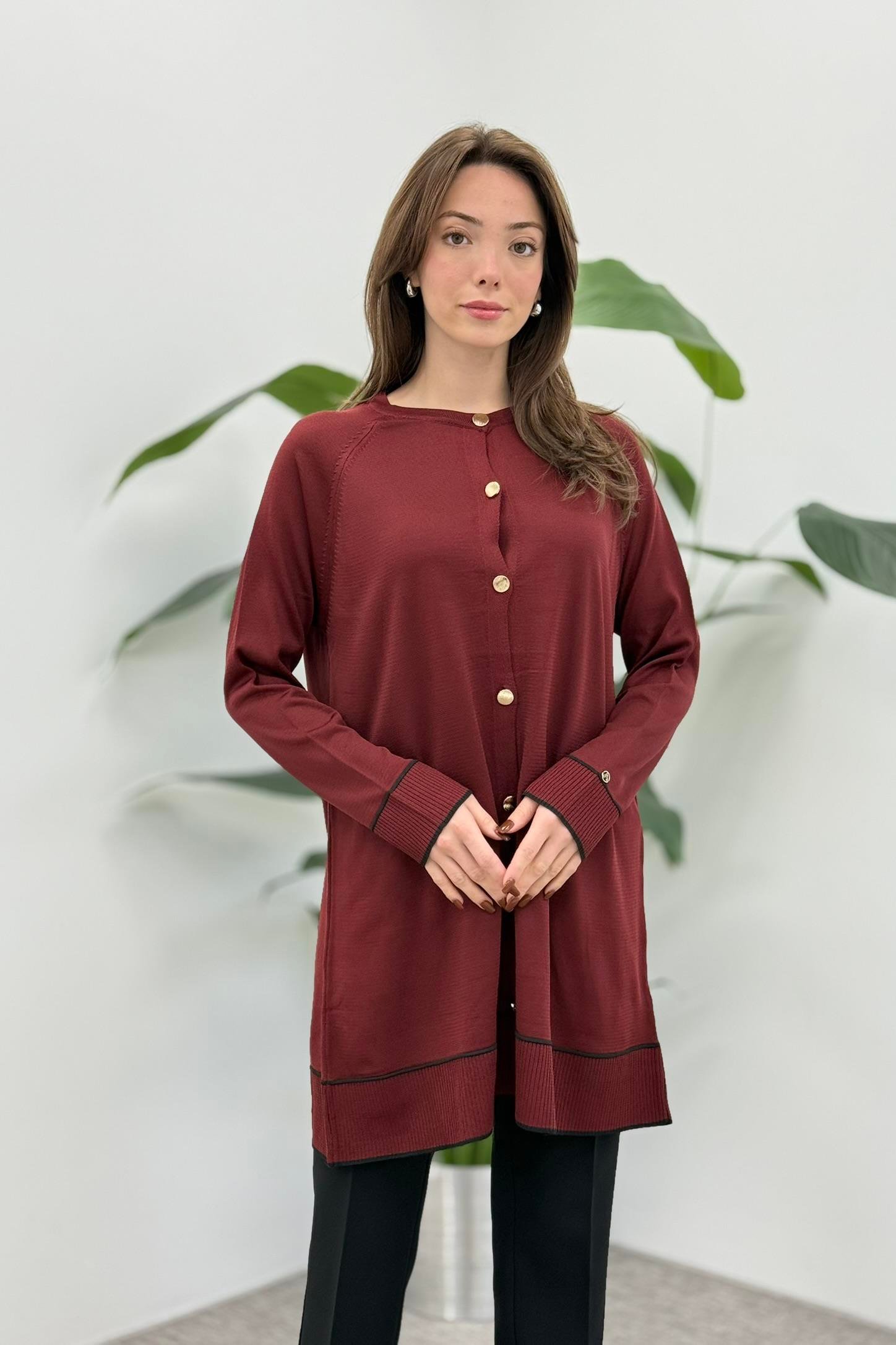 Armine Trend 25YTD4123 Etek Ucu Renk Detaylı Hırka - Bordo (357344902)
