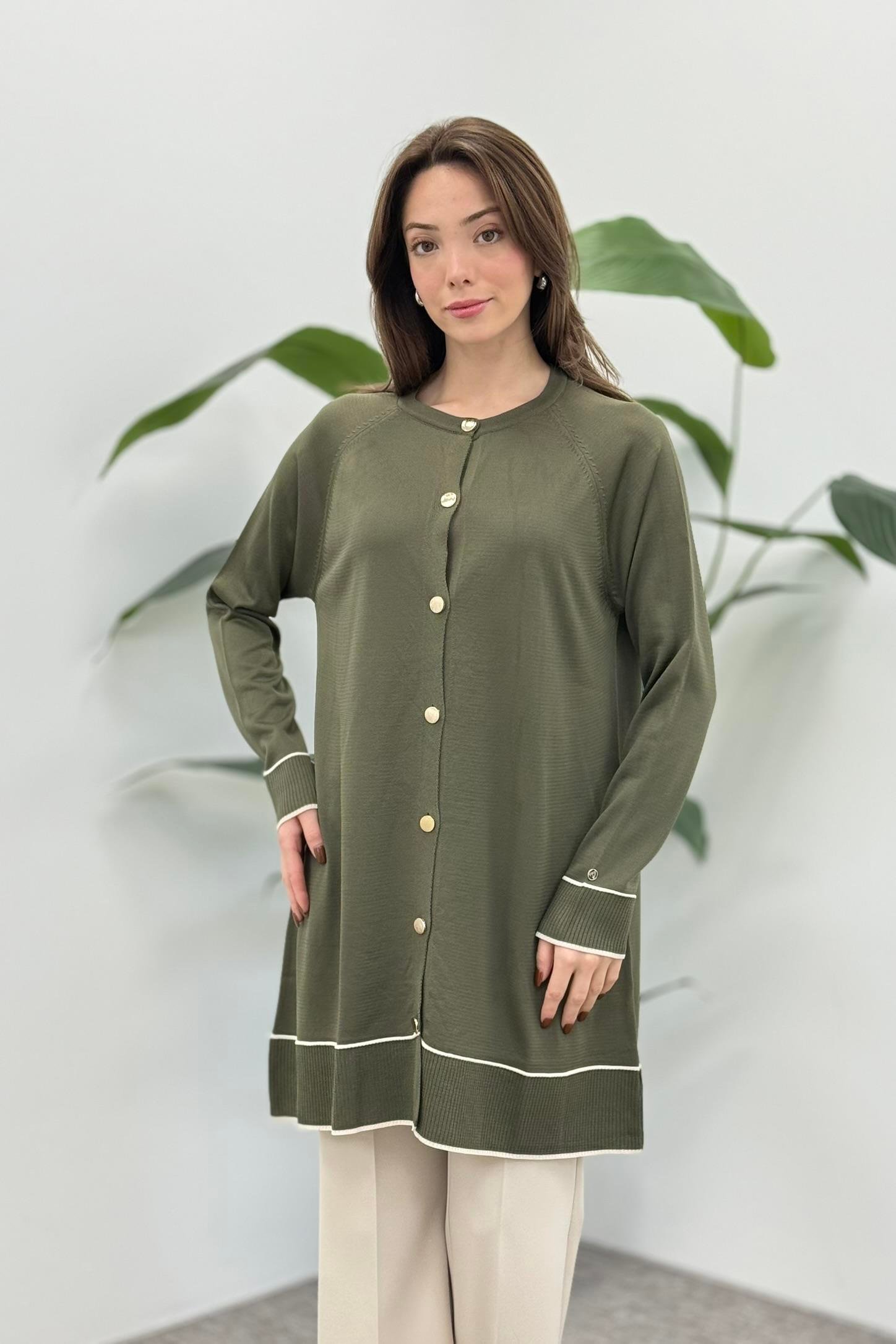 Armine Trend 25YTD4123 Etek Ucu Renk Detaylı Hırka - Haki (357344902)