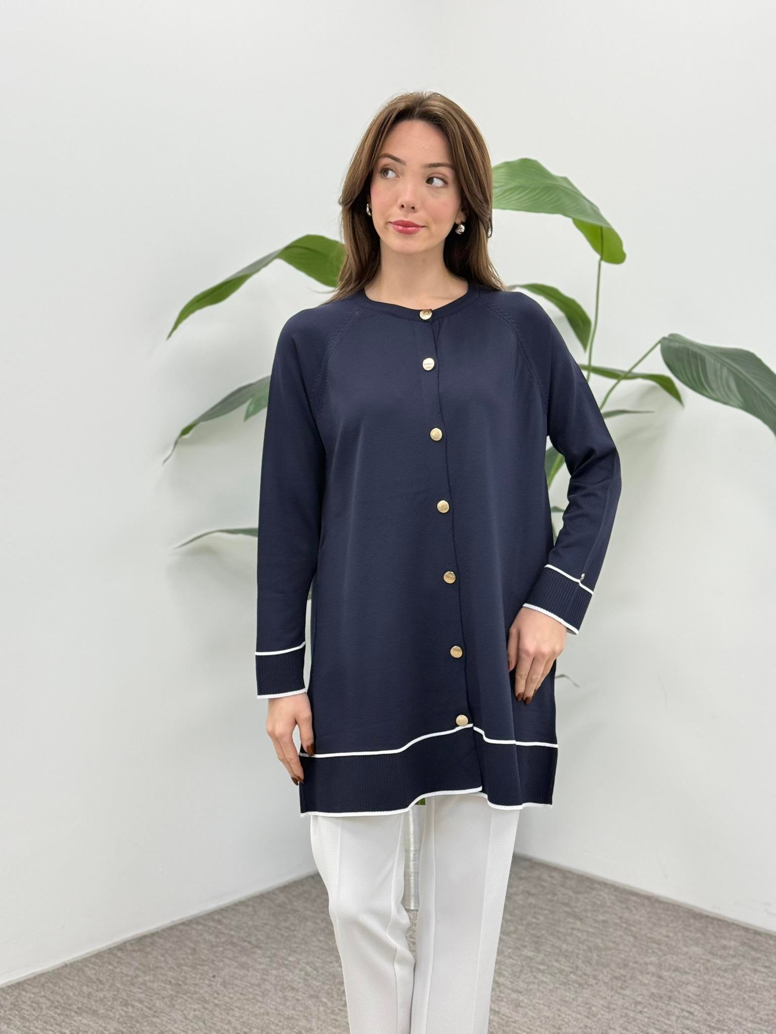 Armine Trend 25YTD4123 Etek Ucu Renk Detaylı Hırka - Lacivert (357344902)