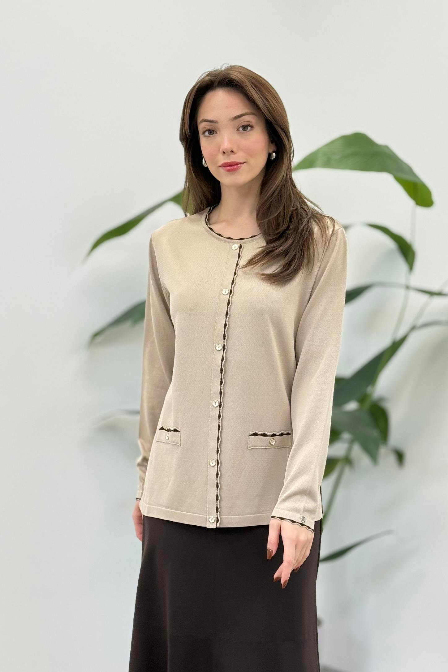 Armine Trend 25YTD4125 Çift Renk Detaylı Hırka - Koyu Taş