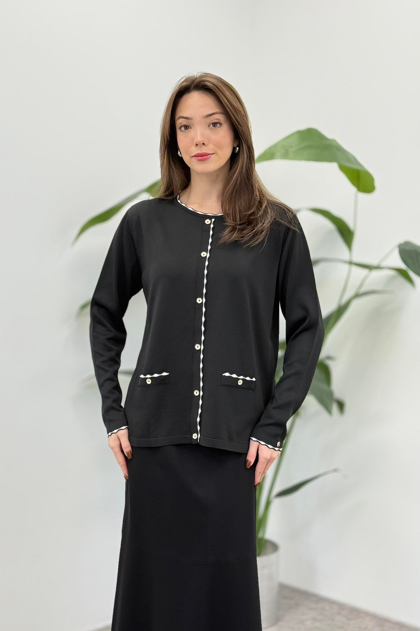 Armine Trend 25YTD4125 Çift Renk Detaylı Hırka - Siyah