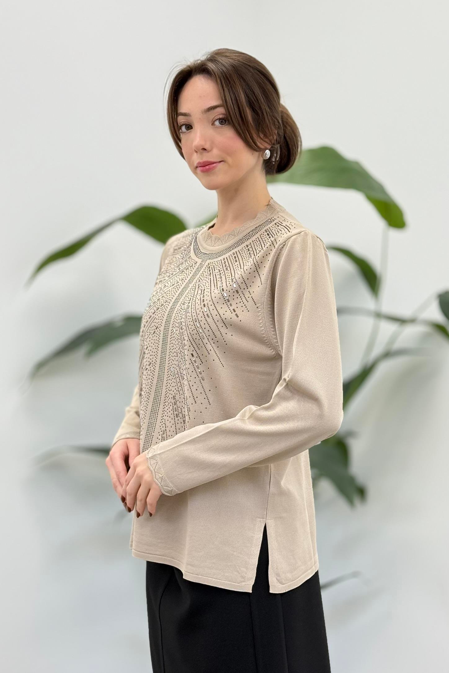 Armine Trend 25YTD4126 Taş Baskılı Kazak - Koyu Taş