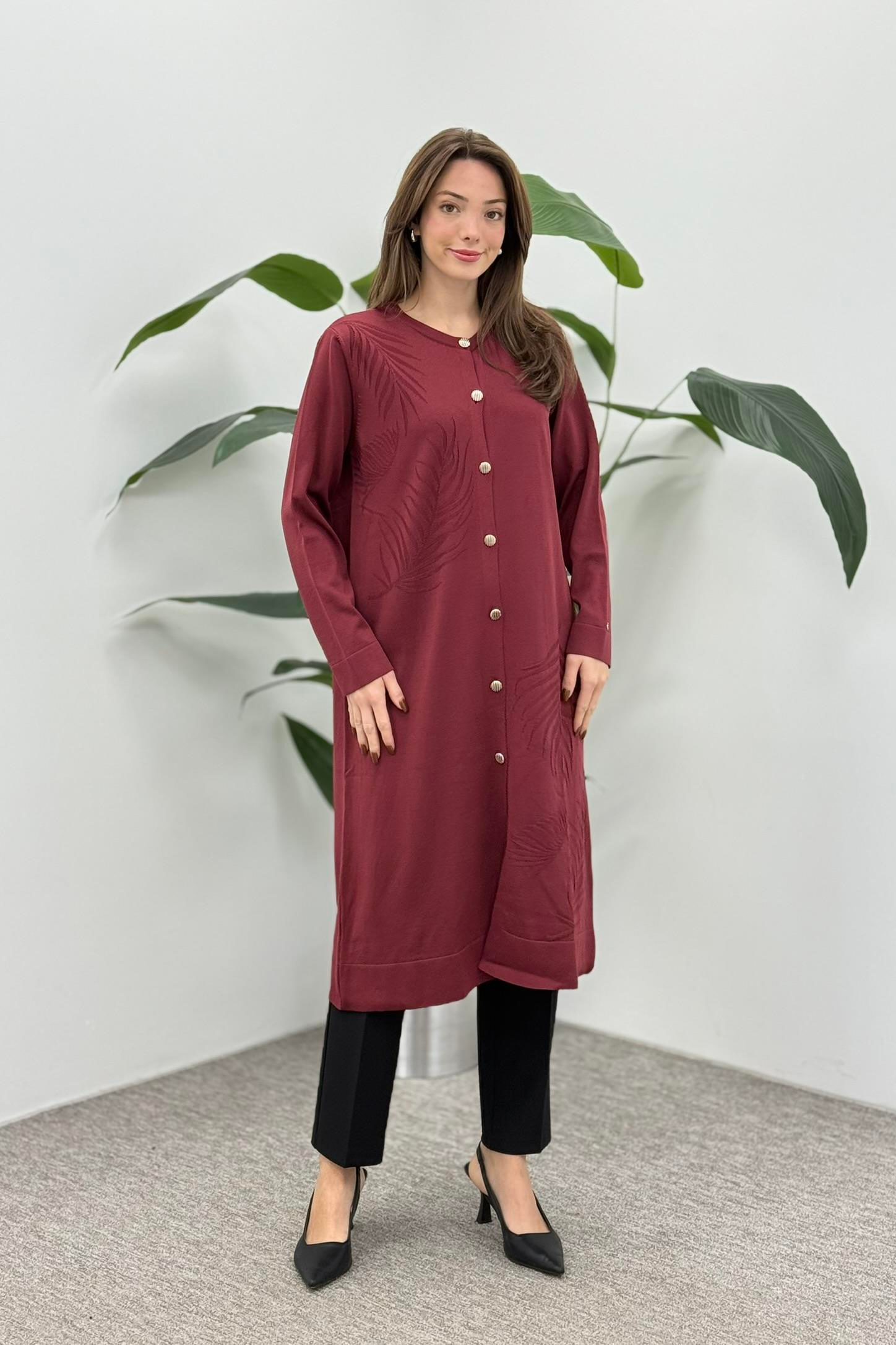 Armine Trend 25YTD4132 Yaprak Desen Düğmeli Hırka - Bordo (357344906)