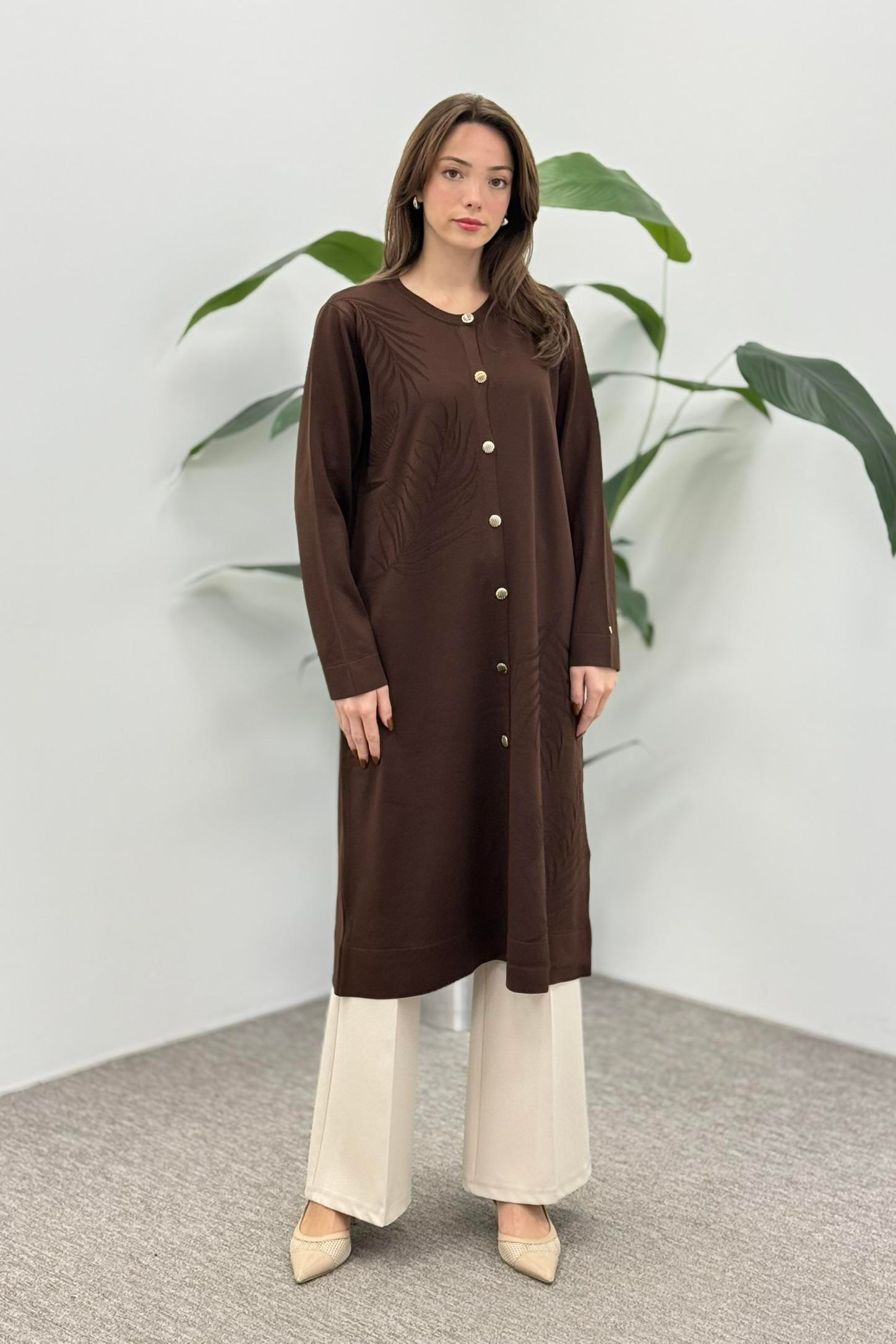 Armine Trend 25YTD4132 Yaprak Desen Düğmeli Hırka - Kahverengi