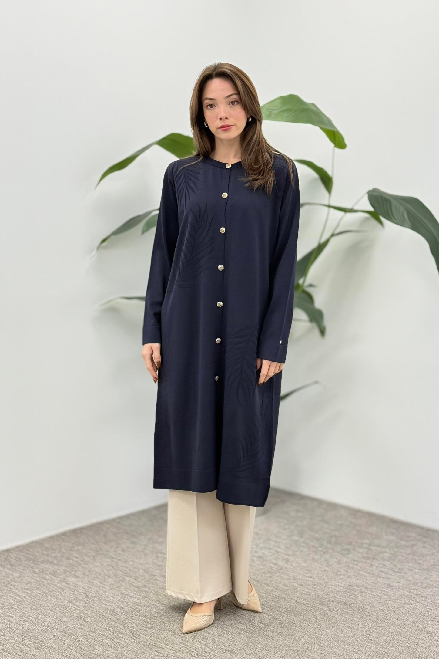 Armine Trend 25YTD4132 Yaprak Desen Düğmeli Hırka - Lacivert