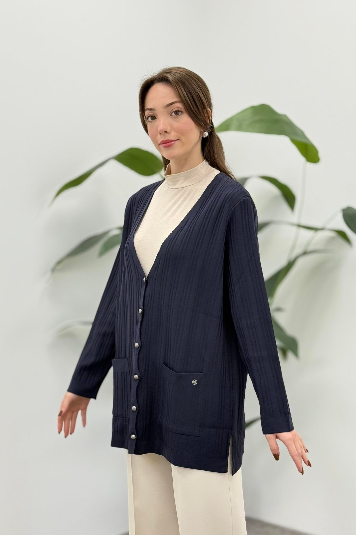 Armine Trend 25YTD570 Çizgi Detaylı Hırka - Lacivert
